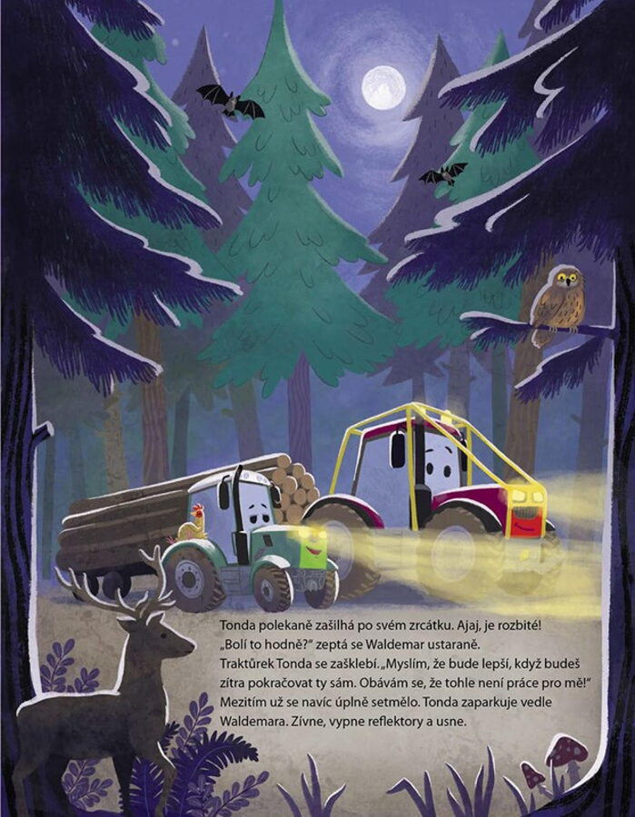 Roztomilý příběh o traktorech, ale také o tom, že každý z nás má své silné stránky a že skvělé zážitky mohou čekat hned za humny. Traktůrek Tonda miluje práci na statku. Ochotně pomáhá se vším, co by lidé nezvládli, a spolu s kombajnem Karlem a cisternou Cilkou tvoří nerozlučné trio. Karel a Cilka často vyprávějí vzrušující příběhy o velkém světě a Tondovi se zasteskne po dobrodružství. Neměl by šlápnout na plyn a vyrazit nějaké najít?