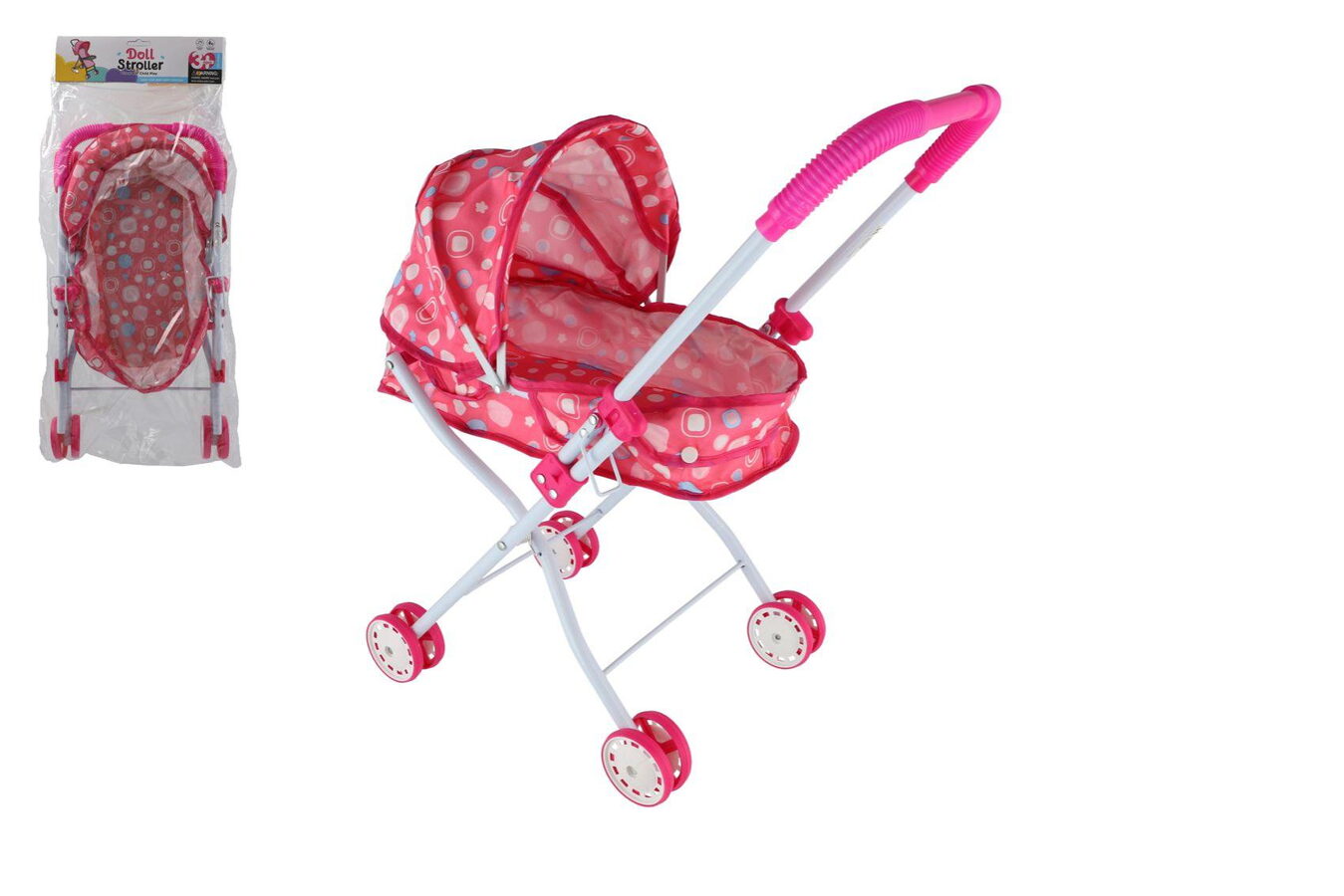 Krásný a pohodlný hluboký kočárek pro panenky, ideální pro malé holčičky, které chtějí svým panenkám poskytnout komfortní místo na spaní. Vyroben z kvalitní látky, která zajišťuje měkkost a bezpečnost. Lehký a snadno přenosný. Skvělý doplněk pro kreativní hraní a procházky.