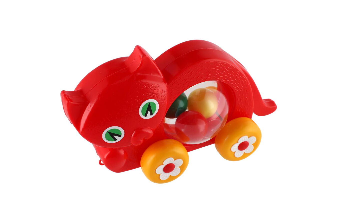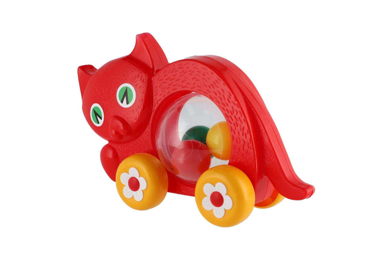 Barevná tahací kočička pro nejmenší děti s míčky, které se pohybují, když dítě hračku táhne. Nostalgická dětská hračka mnoha generací.