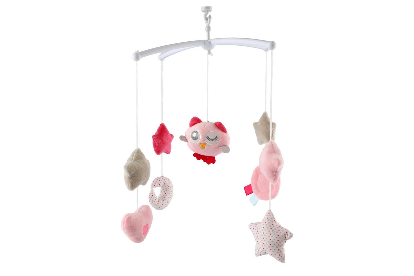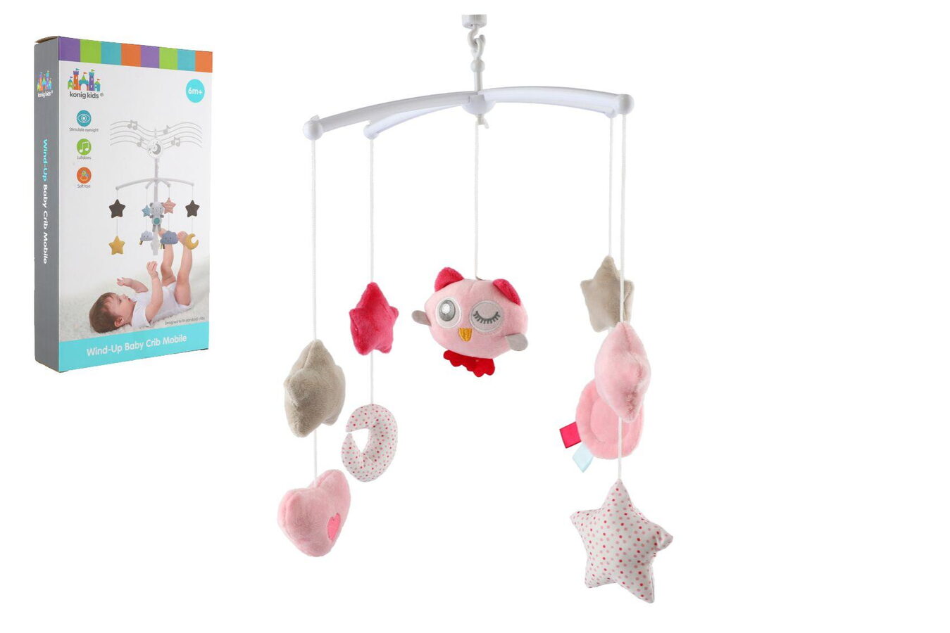 Kolotoč se sovičkou nad postýlku plast s natahovacím hrajícím strojkem růžový v krabici 19x33x5,5cm