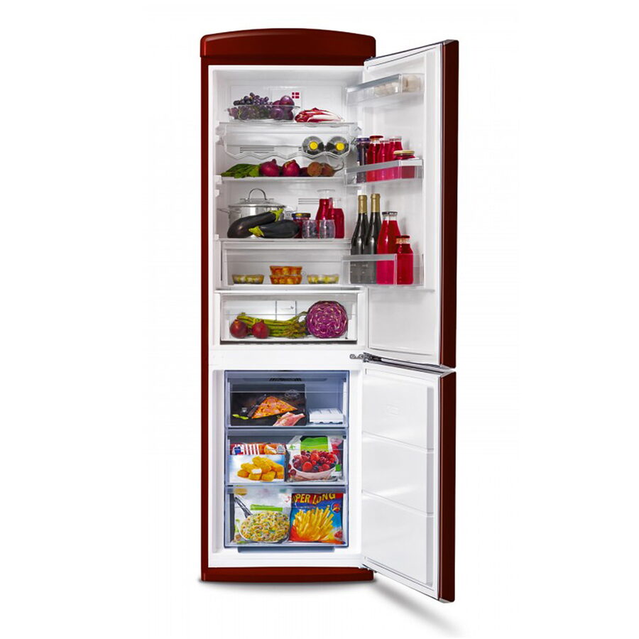 - moderní chladnička s mrazákem - v bordó RETRO designu
