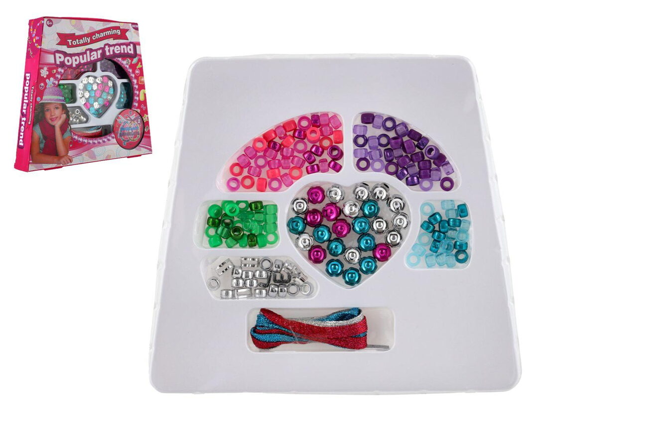 Korálky plastové barevné mix se šňůrkou v krabičce 24x21x4cm