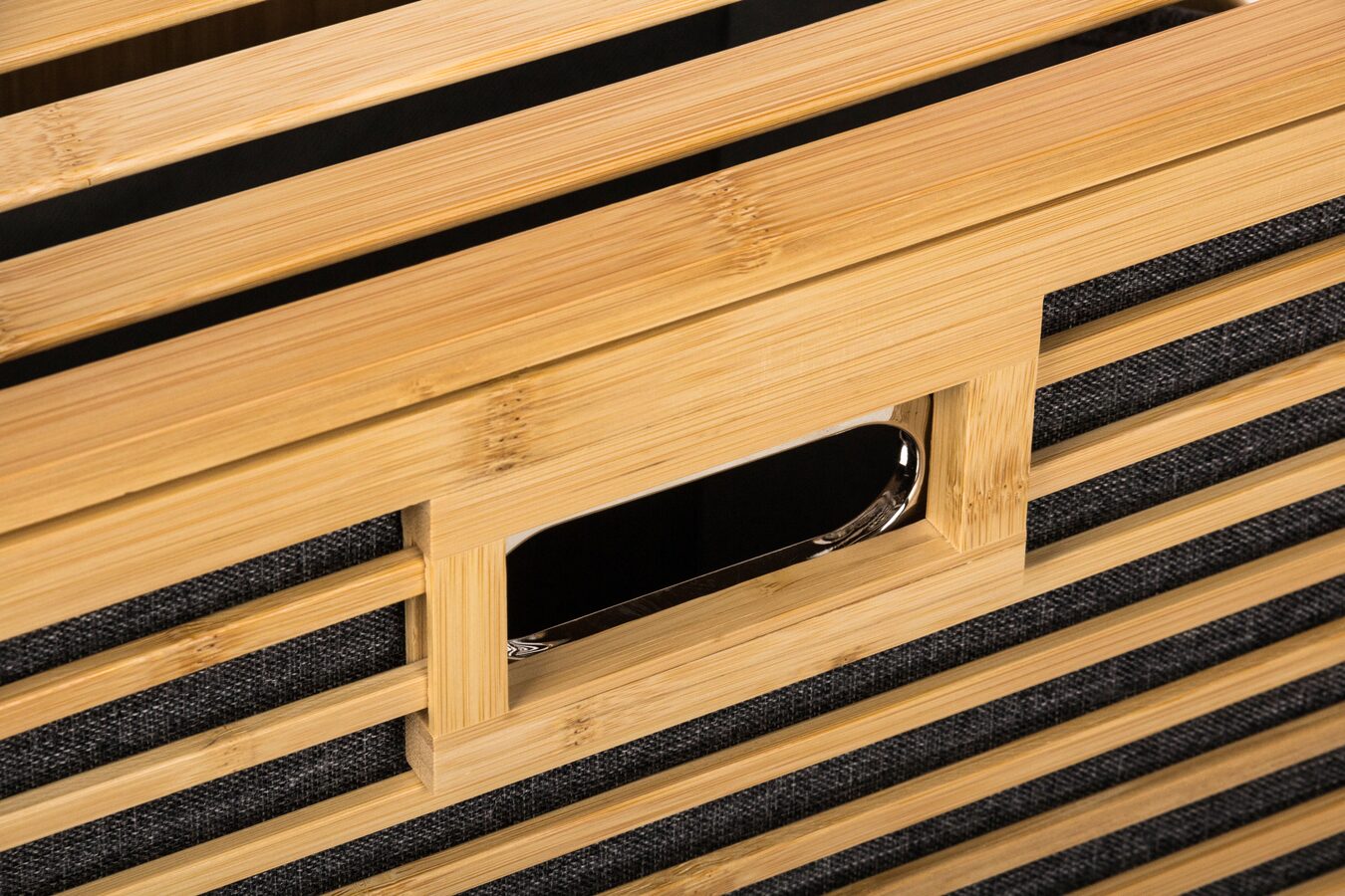 Bambusový koupelnový regál s košem na prádlo dodává interiéru příjemný přírodní dojem. Jeho jemné a teplé barvy mohou oživit a doplnit jakýkoliv prostor bez ohledu na jeho styl – skvěle ladí s rustikálním i moderním nebo minimalistickým interiérem, přizpůsobí se stylu vašeho domova.