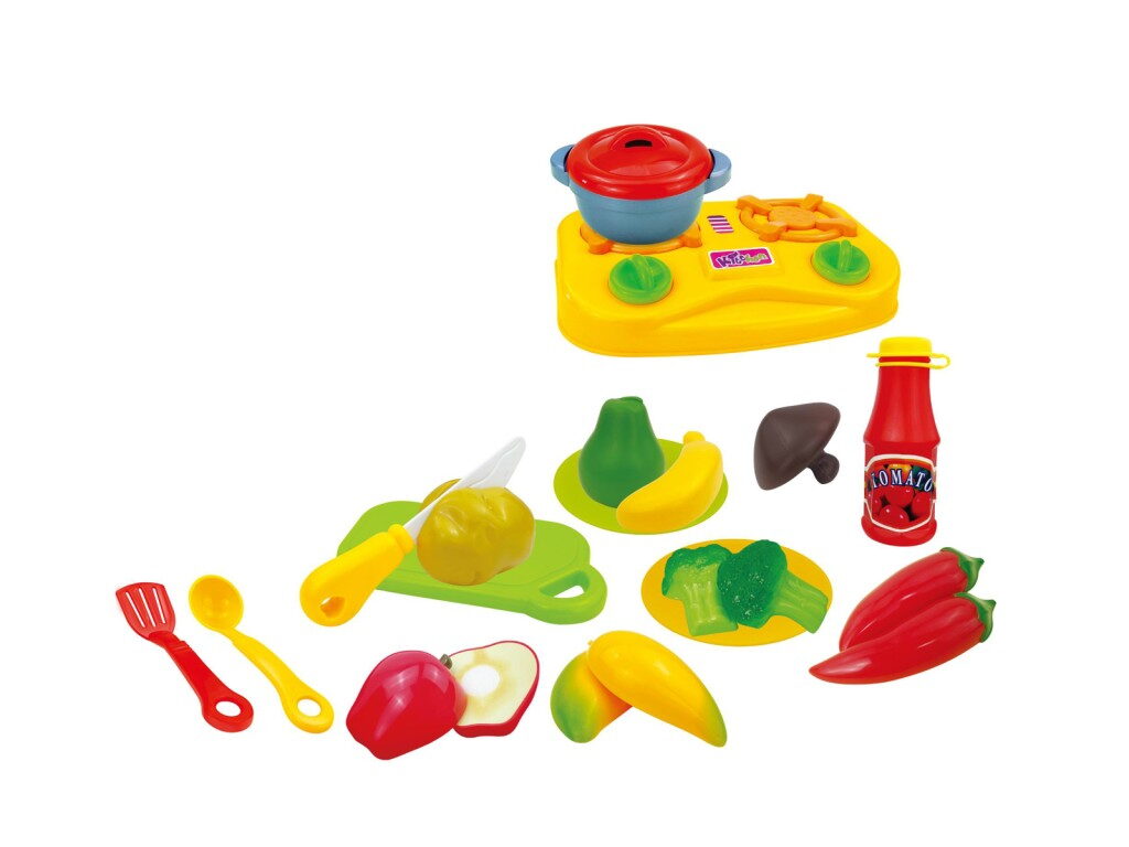 Sada krájecího ovoce a zeleniny v praktickém košíčku je skvělá pro malé kuchaře a kuchařky! Sada obsahuje 17 dílů, včetně různých druhů ovoce a zeleniny, které lze snadno nakrájet pomocí bezpečných, dětských nožů. Všechny kousky jsou spojeny suchým zipem, takže je lze rozdělit na části a znovu spojit. Perfektní pro rozvoj jemné motoriky a kreativního hraní. Všechno je uloženo v praktickém košíku, který usnadňuje skladování a přenášení.