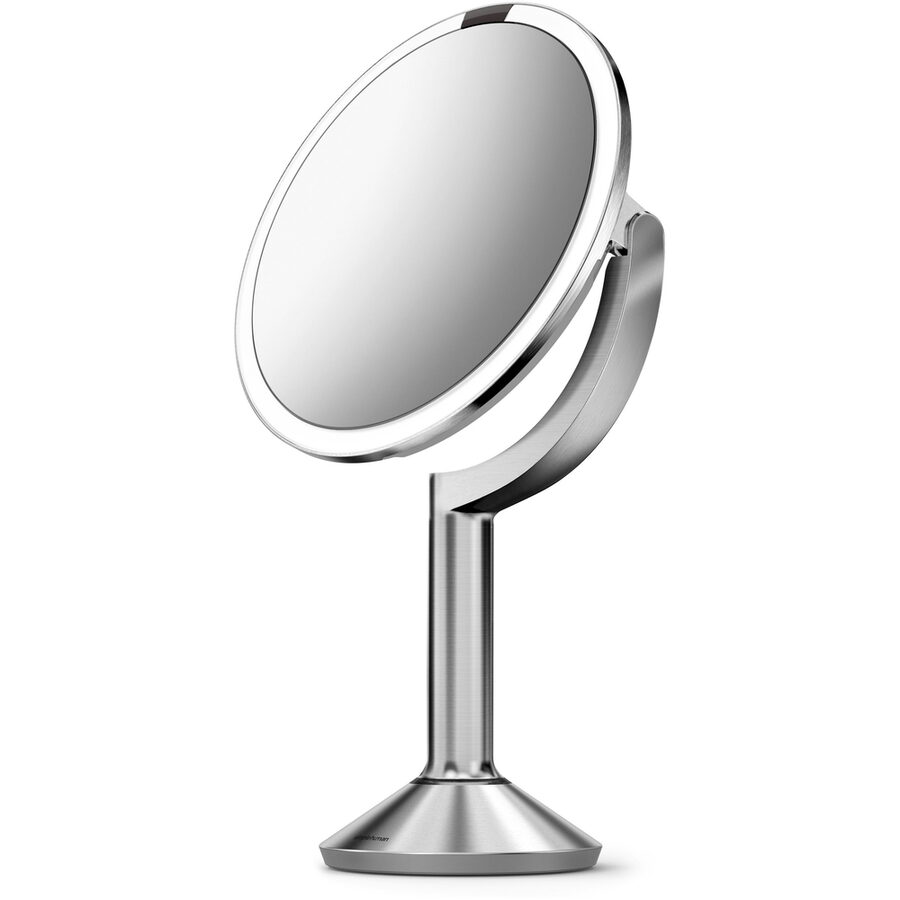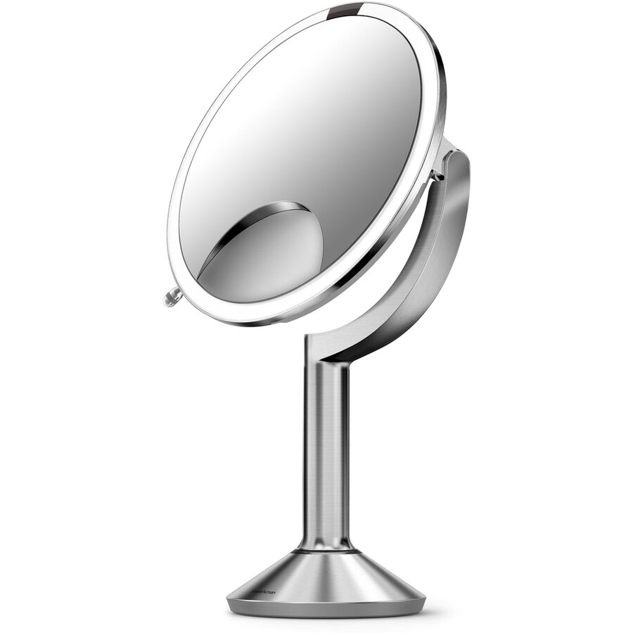 Zrcátko Sensor TRIO od Simplehuman je složeno ze tří různých zrcadel, které přiblíží vaši tvář 1x, 5x nebo 10x. Nově má zesílený jas na 800 luxů, možnost nastavení jasu a režim světla svíčky. Je nabíjecí, světlo se spouští senzorem pohybu a Simplehuman poskytuje 5 let záruku. Provedení z kartáčované nerez oceli.