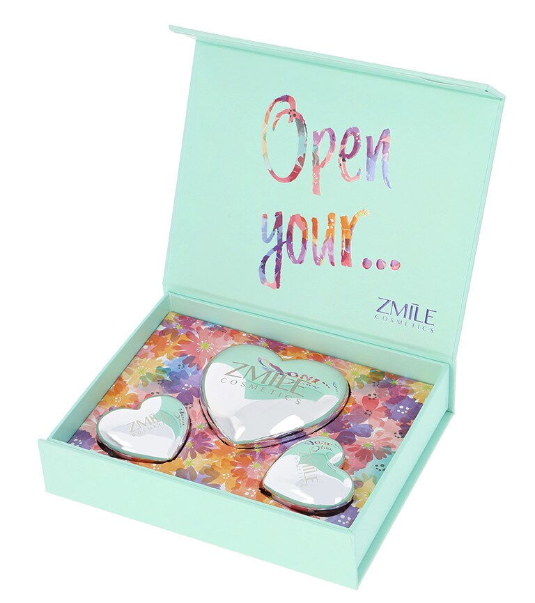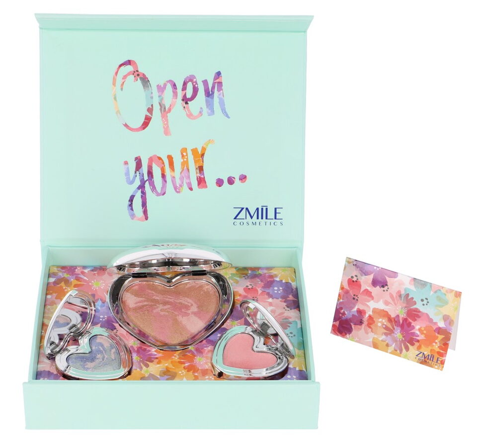 Kosmetická sada „Sweethearts Pastel Love“ – dárková sada obsahuje 3 kovová srdíčka – 1× tvářenka, 1× oční stíny a 1xrtěnka. Dermatologicky testováno, vyhovuje přísným normám EU.