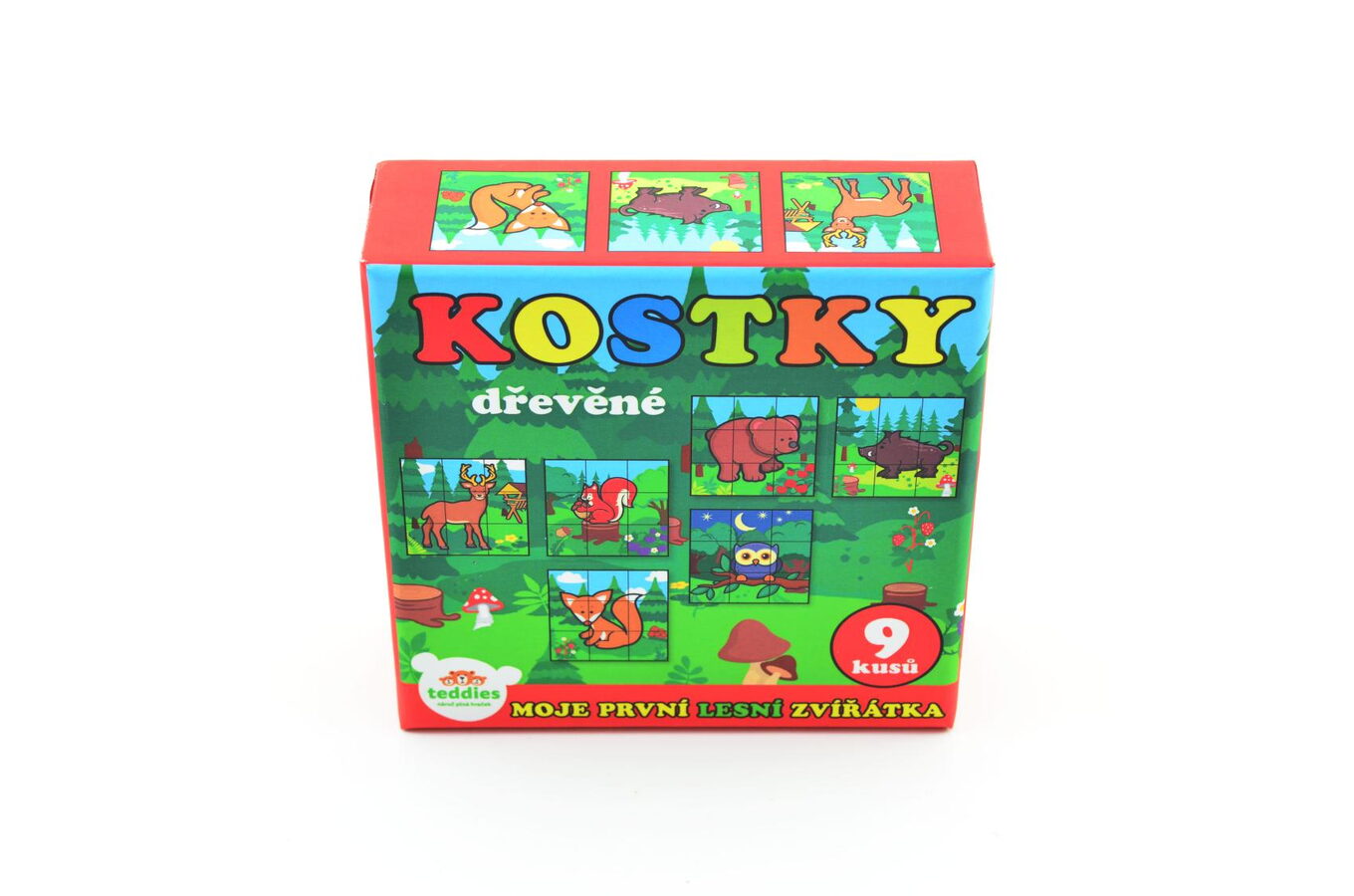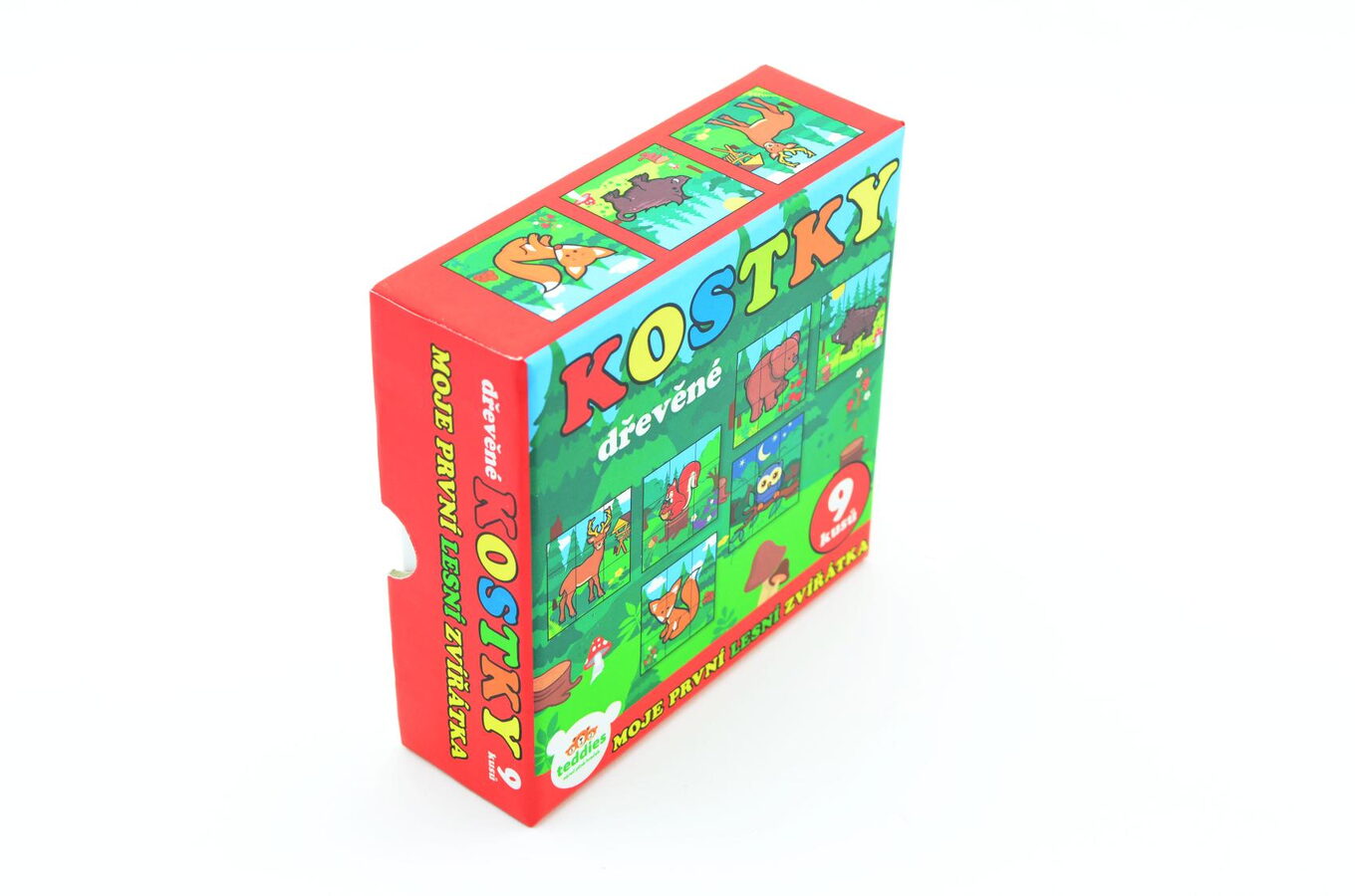 Teddies Kostky kubus dřevěné Moje první zvířátka lesní dřevo 9x9x3cm 9ks v krab.11x11x6c