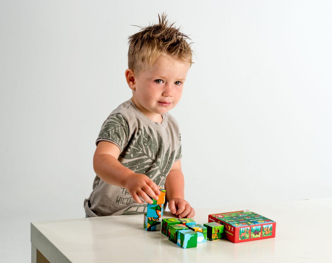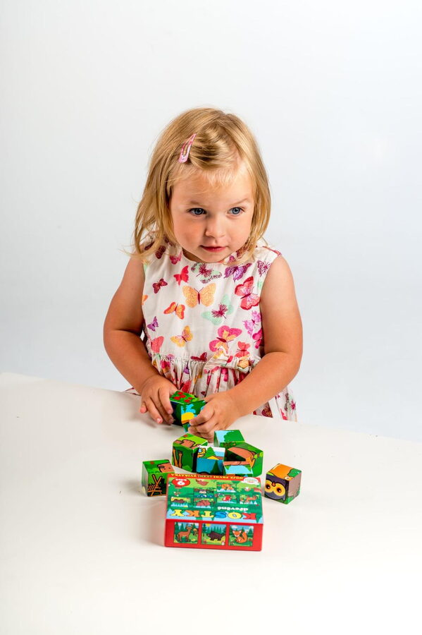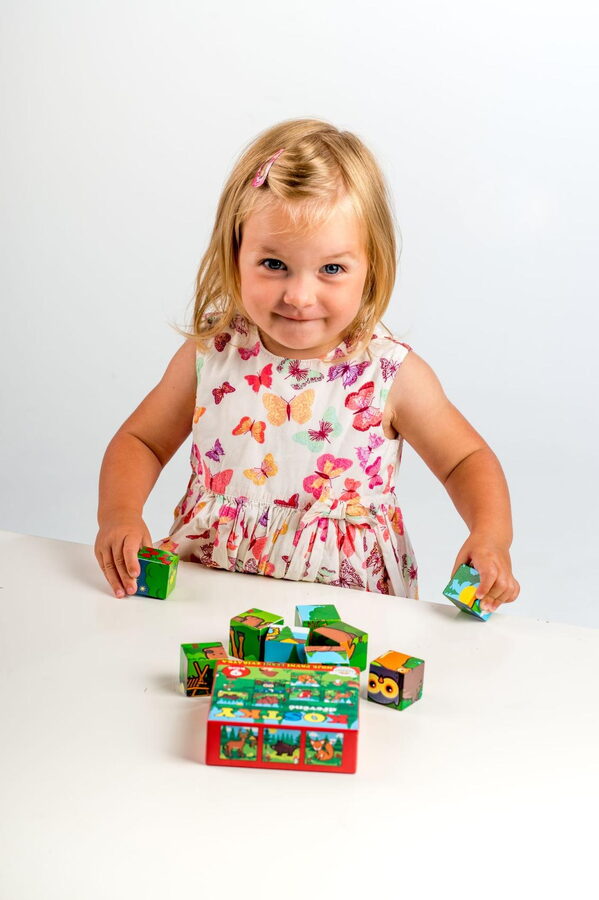 Dřevěné kostky s barevnými obrázky domácích zvířátek jsou výborná volba pro nejmenší.