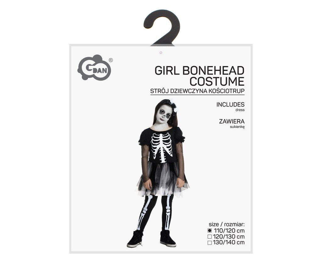 Dětský holčičí kostým Kostlivec velikost 110/120 cm. Kostým obsahuje šaty.