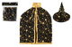 Klobouk čarodějnický + plášť pro děti průměr 38cm černo-zlatý v sáčku karneval