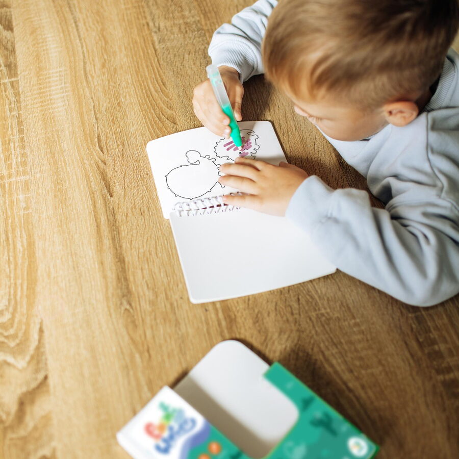Kouzelné malování vodou s dinosaury nadchne každého malého průzkumníka! Tento praktický blok obsahuje 8 stránek s obrázky dinosaurů, které ožijí barvami po naplnění štětce vodou. Stačí malovat vodou a sledovat, jak se barevné detaily objeví bez nutnosti dalších pomůcek. Ideální pro zábavné cestování nebo tvořivé chvilky doma. Stačí štetec odšroubovat, naplnit vodou, vybarvit obrázky. Po uschnutí obrázek zase zmizí a lze tak používat opakovaně.