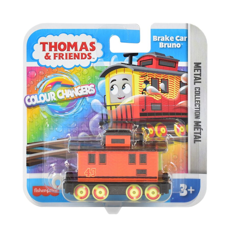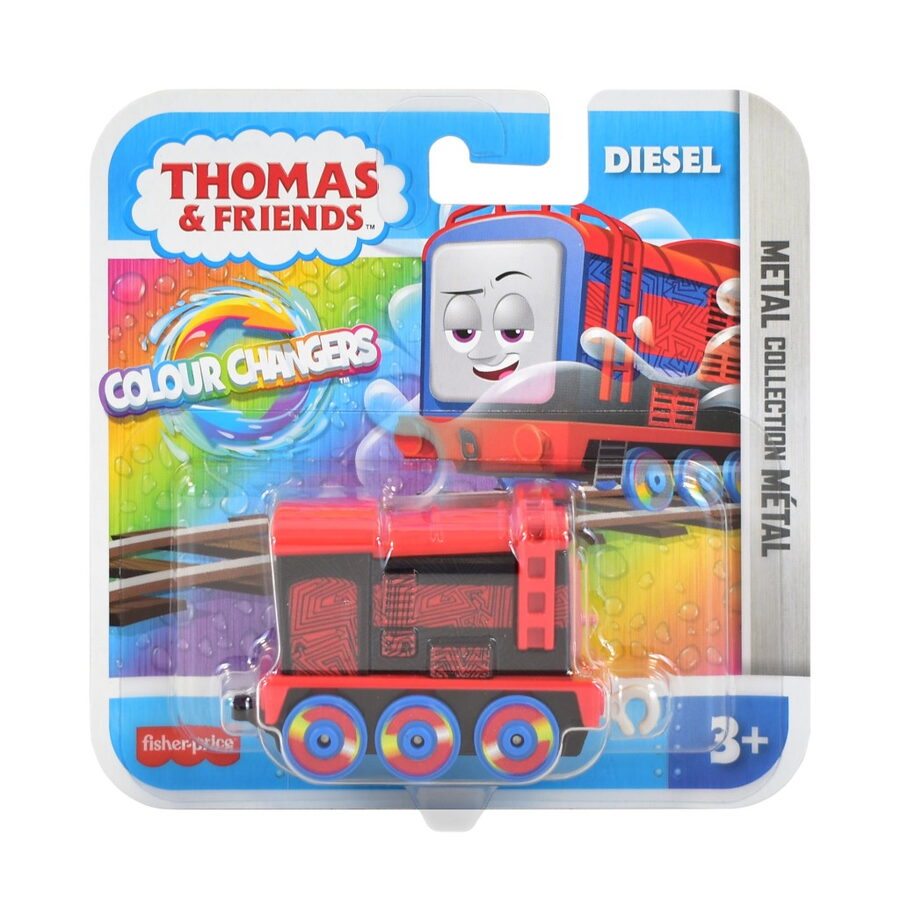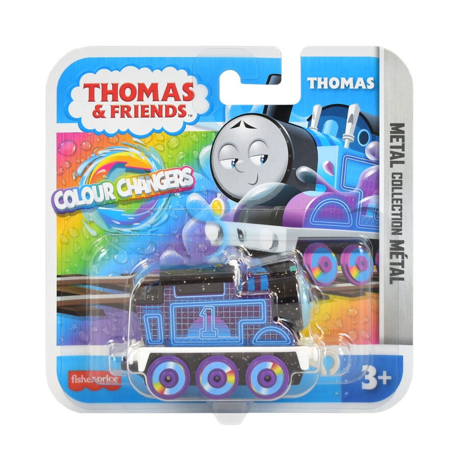 Kovová mašinka Tomáš mění barvu Mašinka Tomáš a jeho přátelé – Mašinka mění barvu na základě teploty vody. Je to jako mít „dvě mašinky v jedné“!Děti ponoří mašinku do teplé vody a objeví se jedna barva/vzhled, a poté ji ponoří do ledově studené vody, aby se objevila barva/vzhled druhý (nebo se odhalila skrytá dekorace).Jde o ručně posouvanou kovovou mašinku, ne o motorizovaný model.Tyto modely jsou kompatibilní s většinou tratí Thomas & Friends (kromě dřevěných). Tři různé typy – Tomáš (hlavní modřá mašinka), Percy (zelená mašinka – Tomášův nejlepší kamarád) a Kana (rychlá žlutá mašinka).