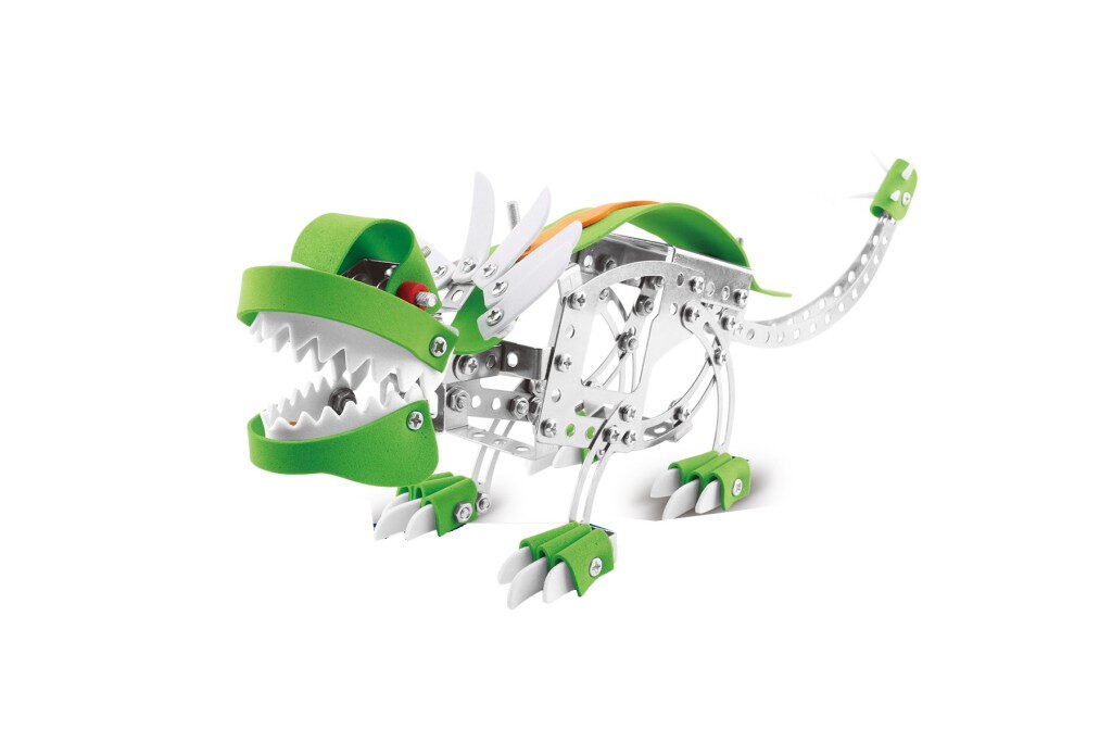 Postavit jedinečného dinosaura ze 192 dílků je náročná, ale zároveň nesmírně uspokojující úloha. Sada obsahuje kombinaci kovových dílů a plastových doplňků, které se spojují pomocí šroubků a matiček. Tento sofistikovaný systém stavby je navržen tak, aby stavění bylo jednoduché, zábavné a zároveň výzvou.