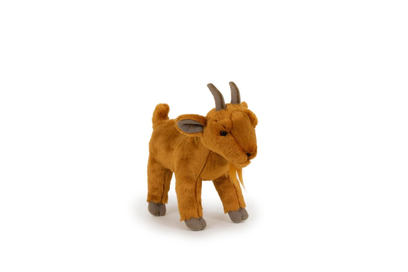 Kozel je vyroben z měkkého a hebkého plyše, který je příjemný na dotek a ideální pro mazlení. Má hnědý kožíšek, realistické detaily, jako jsou rohy, čumáček, vousky a výrazné oči, které mu dodávají autentický a přátelský vzhled. S velikostí 25 cm je tato plyšová hračka ideální na objímání, nošení s sebou nebo jako dekorace do dětského pokoje.