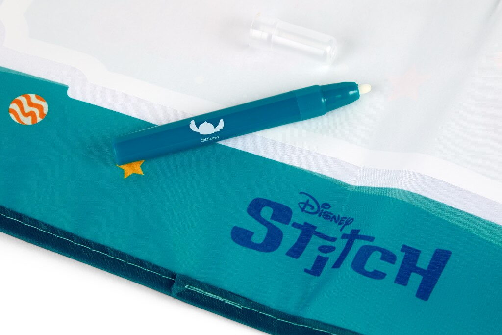 Kreativní podložka na vodní malování s oblíbeným hrdinou Stitch. Děti mohou pomocí speciálního vodního pera vybarvovat obrázky na podložce – po zaschnutí voda zmizí a mohou začít znovu.Opakovaně použitelná – žádné barvy ani nepořádek,snadno přenosná, vhodná na doma i na cesty.