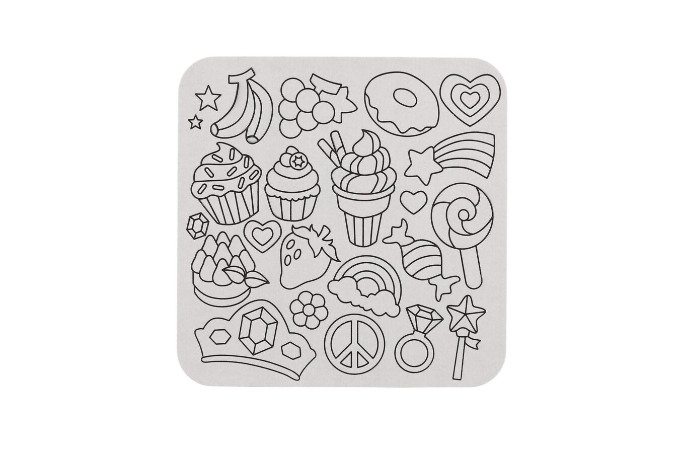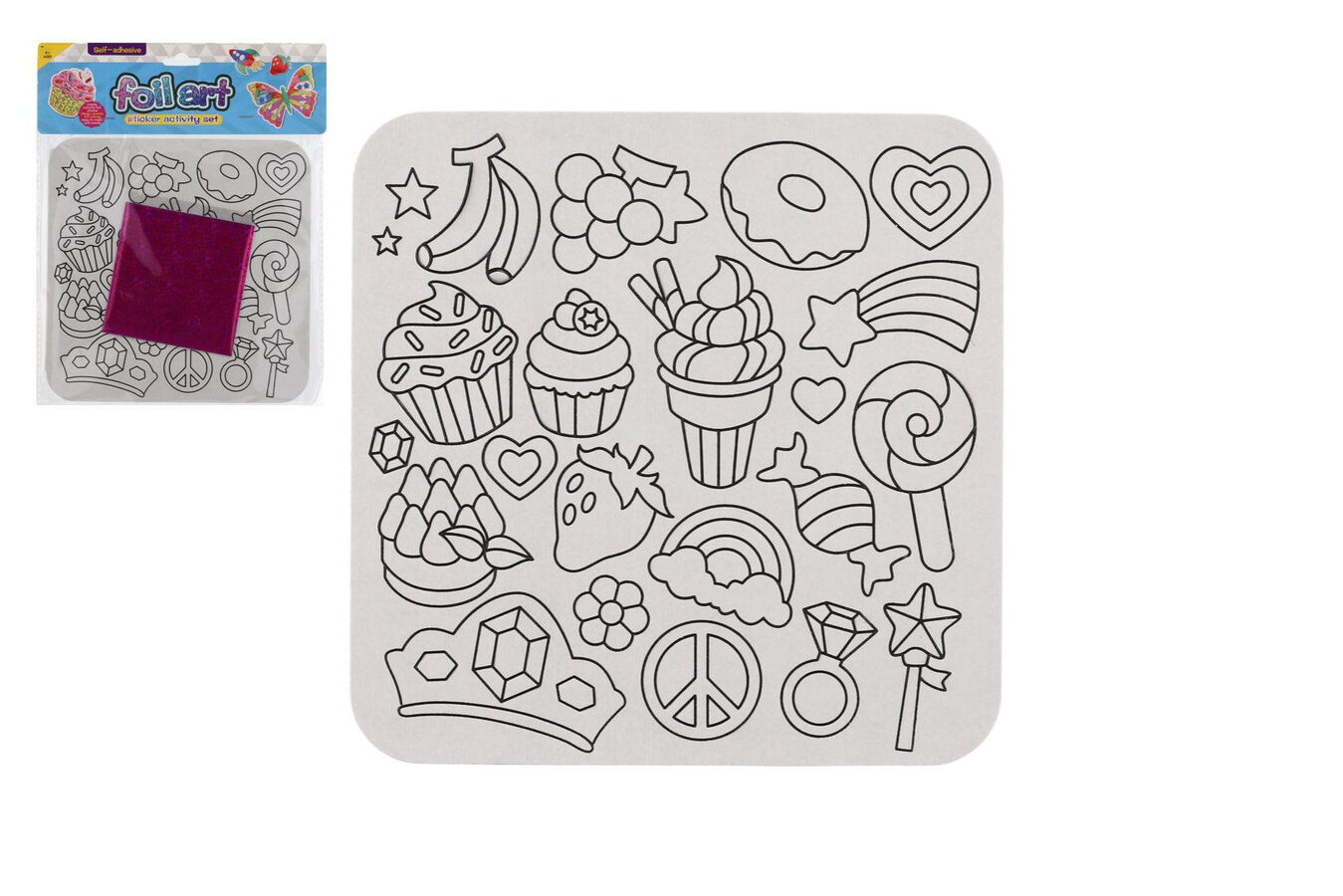 Se sadou si mohou děti ozdobit obrázky za pomocí nálepek a fólií. Z vybraného motivu sloupnete chráníci kryt a na lepící stranu aplikujete vybranou folii.