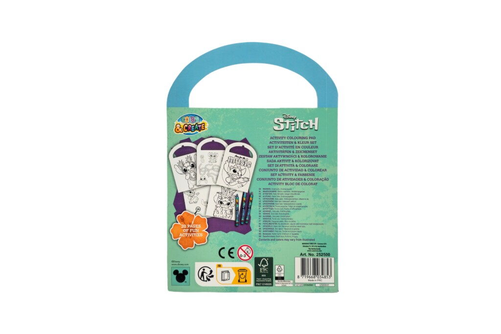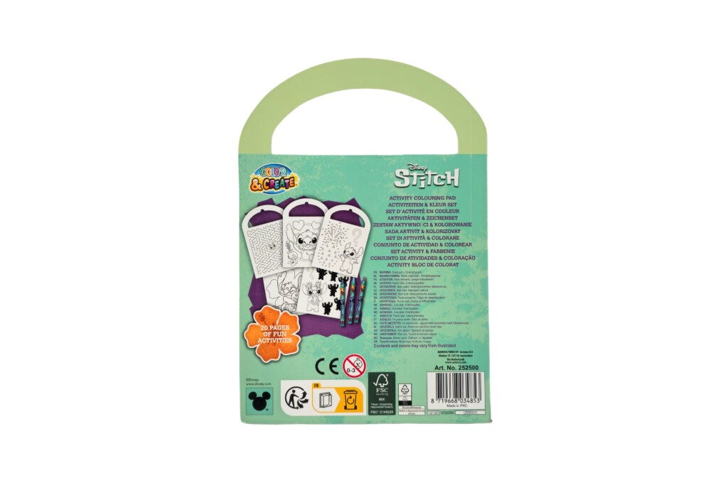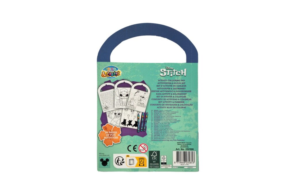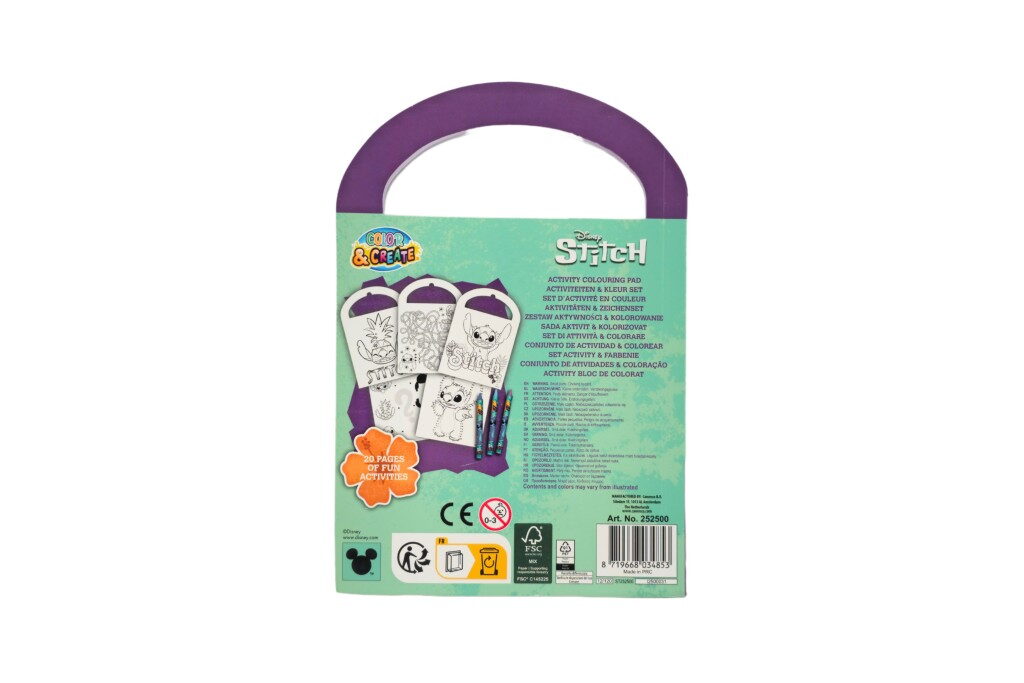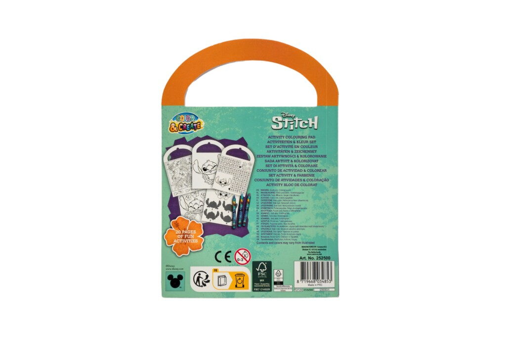 Zábavný kreativní sešit aktivit s motivy oblíbeného seriálu Stitch. Obsahuje různé úkoly, omalovánky a hádanky, které rozvíjejí kreativitu i logické myšlení dětí. K dispozici je 6 různých variant, ideální pro malé fanoušky Stitche a jejích kouzelných kamarádů. Součástí jsou i 3 voskovky.