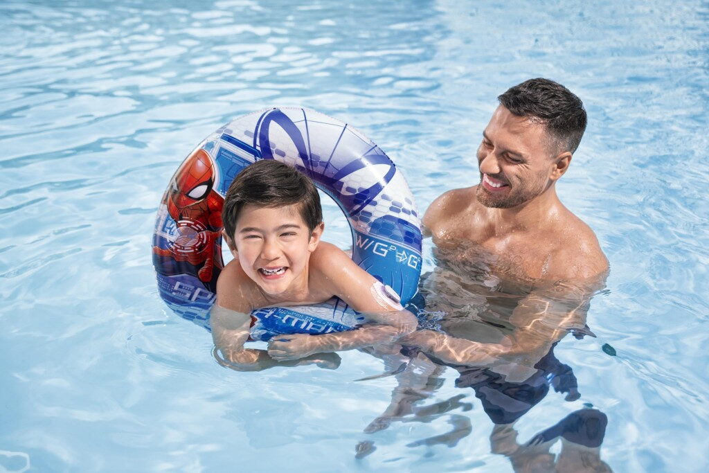 Nafukovací kruh v designu Spiderman pro děti od 3 do 6 let o průměru 56 cm.