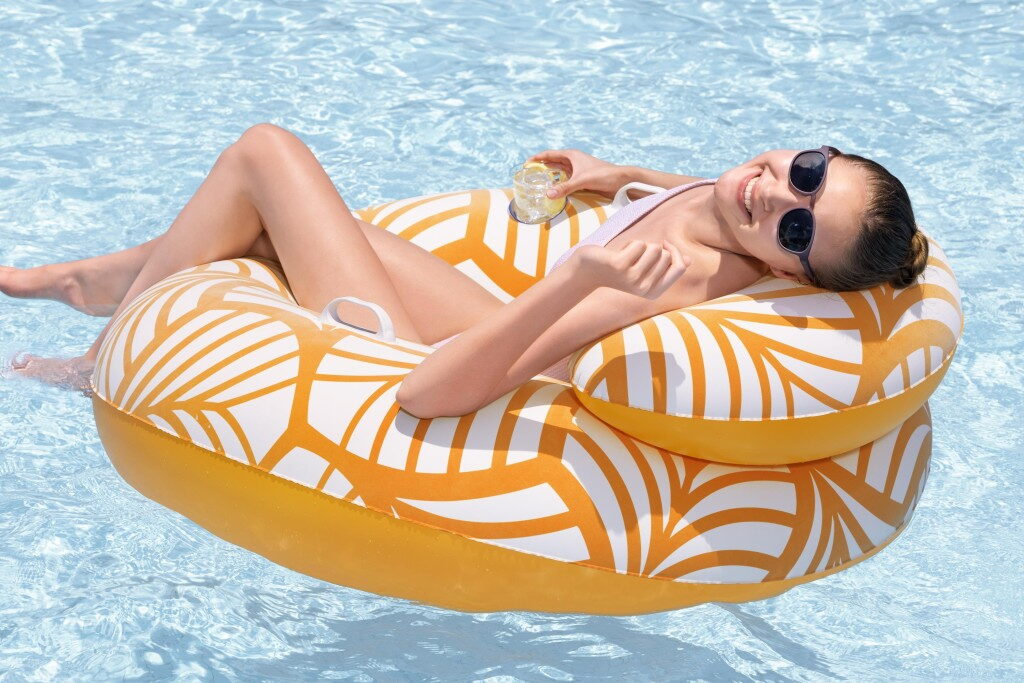 Kruh Comfort Plush™ má vodotěsný sametový povrch pro extra pohodlí, je o rozměrech 118×117 cm a maximální nosnost 100 kg. Barva materiálu na kruhu se ve vodě rozjasní a zintenzivní. Kruh má pohodlnou opěrku hlavy, jeden držák nápojů a opravná záplata je součástí balení.