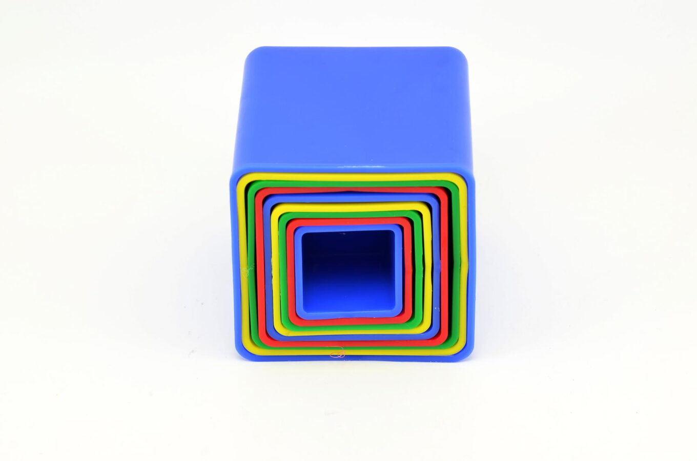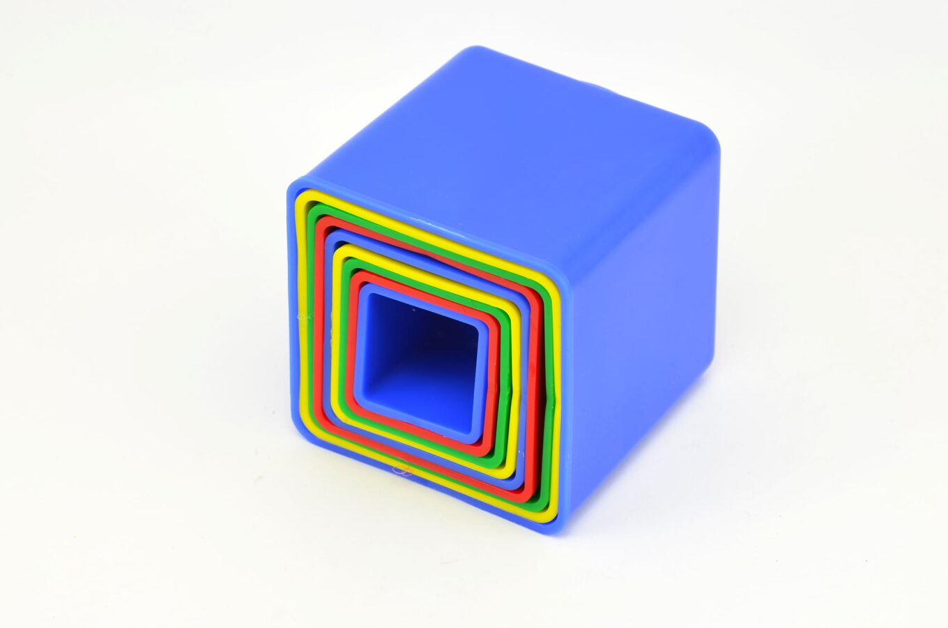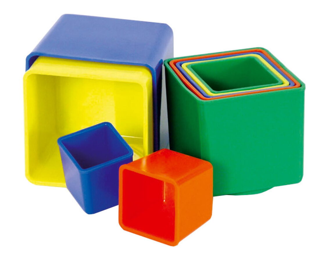 Kubus obsahuje devět kalíšků různých barev, které do sebe zapadají. Skládanku si děti mohou vzít i na písek nebo do vody.