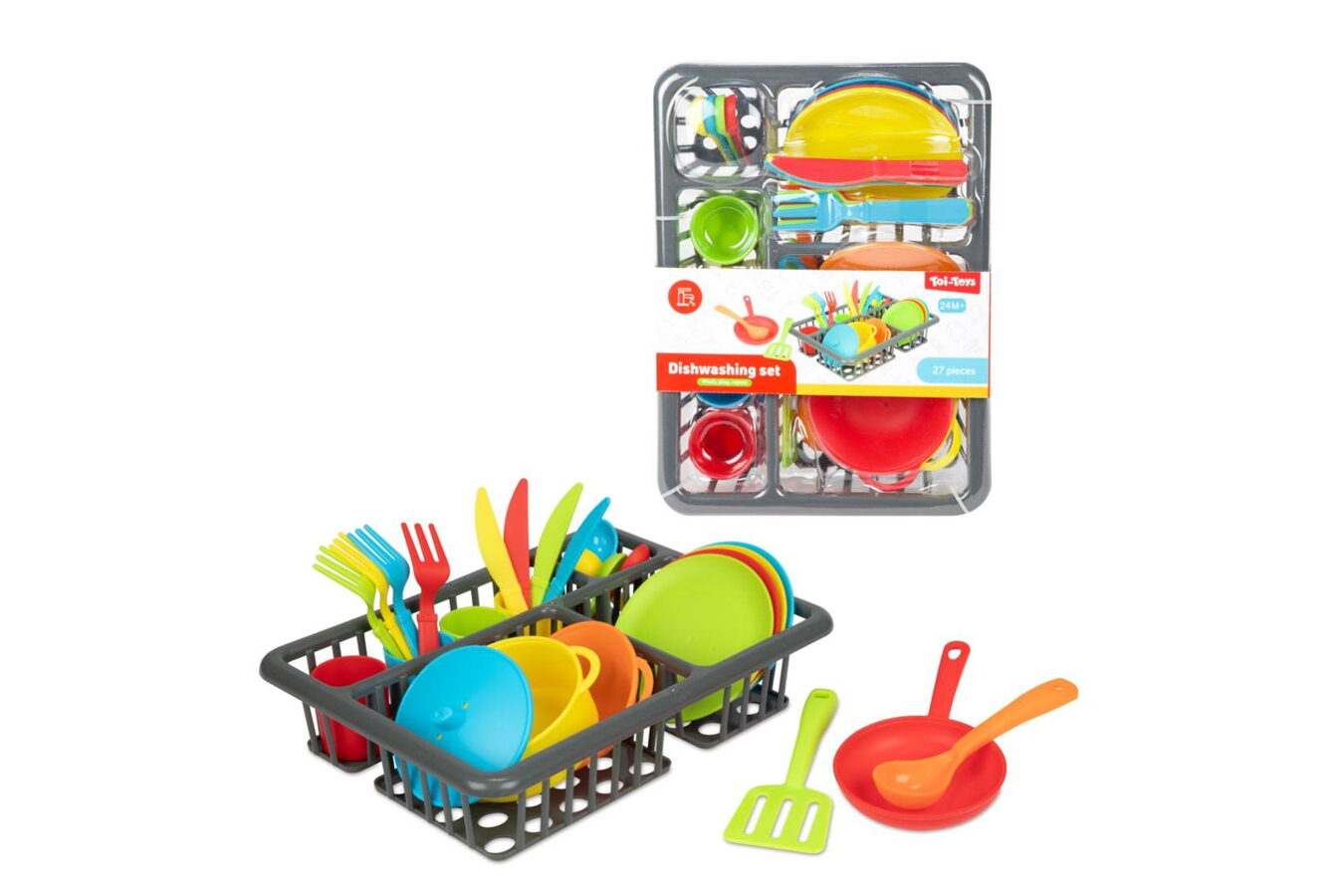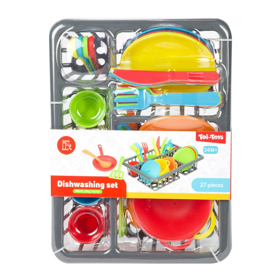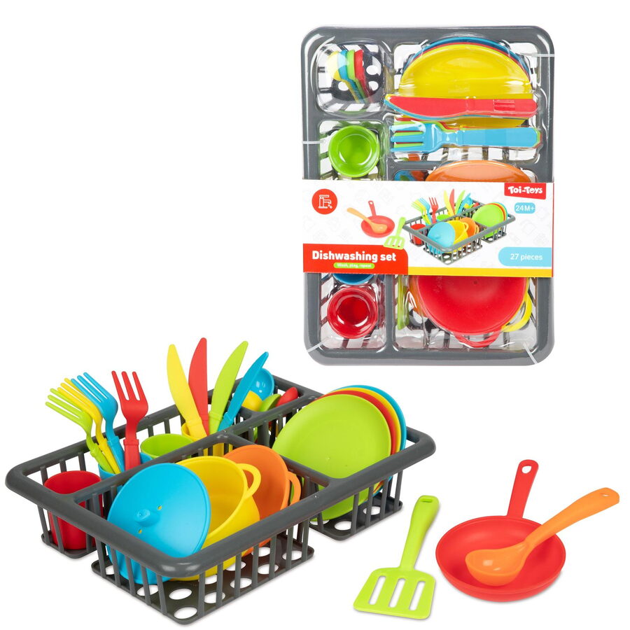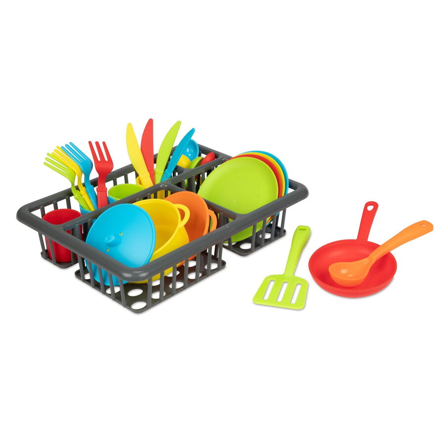 Tato sada obsahuje 27 dílů, které zahrnují různé druhy nádobí, jako jsou hrnec, pánev, talíře, šálky, příbory a další kuchyňské pomůcky. Sada je vhodná pro rozvoj kreativity, jemné motoriky a sociálních dovedností dětí, protože si mohou hrát na vaření, servírování jídla a sdílení s ostatními. Všechno je baleno v blistru, což zajišťuje praktické a přehledné uskladnění. Tato hračka je ideální pro děti, které si chtějí vyzkoušet role v domácnosti a objevovat svět vaření zábavnou formou.