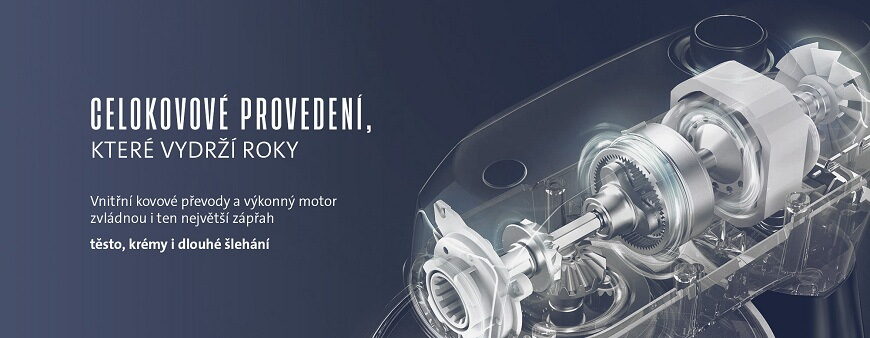 Silný motor s příkonem až 1500 W, odolné celokovové provedení včetně kovových převodových kol jsou zárukou vysoké odolnosti, dlouhé životnosti a perfektní stability i při velké zátěži. Díky plynulé regulaci otáček si přizpůsobíte intenzitu míchání podle konkrétního receptu. Nechybí funkce PULSE pro maximální výkon ani stabilizátor otáček, který zajistí stálý výkon i při náročnějším zpracování. Planetární systém míchání zase zaručuje dokonalé promísení všech ingrediencí v prostorné nerezové míse o objemu 5,5 litru.