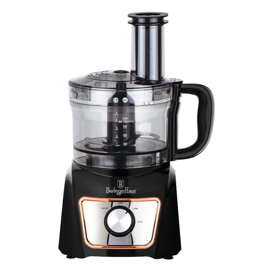 Kuchyňský robot Black Rose Collection je nejen praktickým a stylovým doplňkem do kuchyně, ale díky různým funkcím a příslušenství také usnadňuje každodenní kuchyňské úkoly. Kombinace nerezové oceli a plastu zaručuje odolnost a snadné čištění, zatímco černá a růžově zlatá barva činí kuchyňský robot jedinečným.