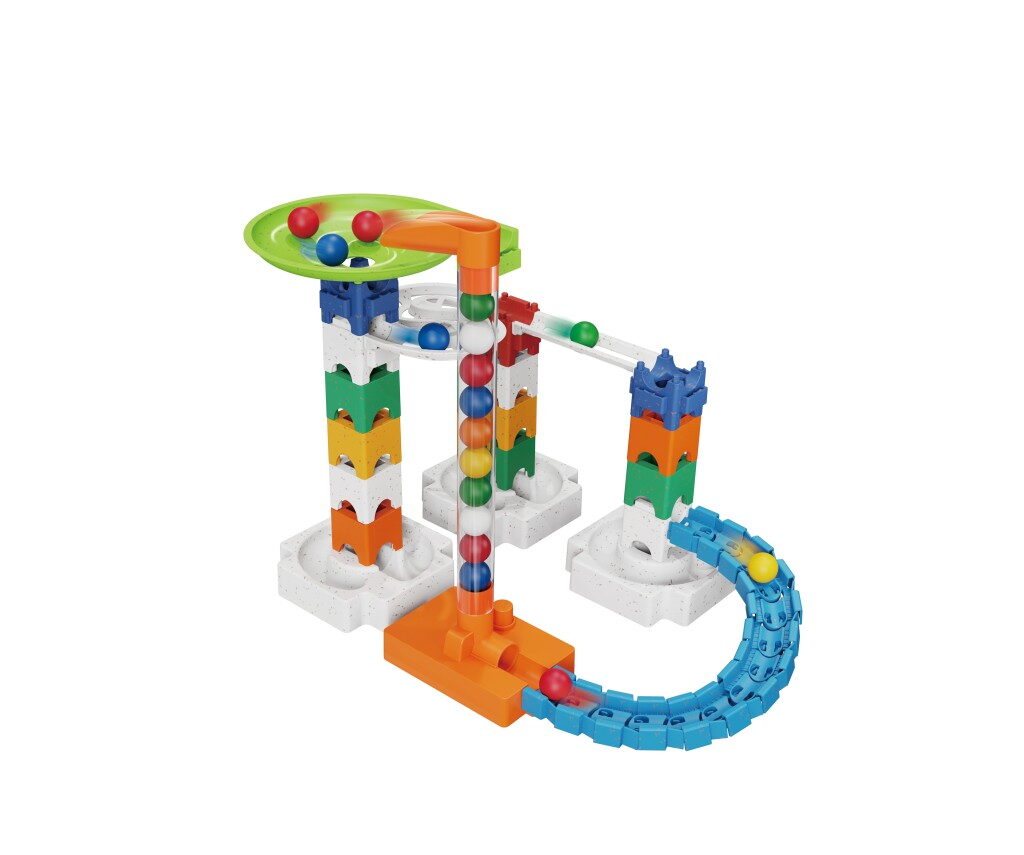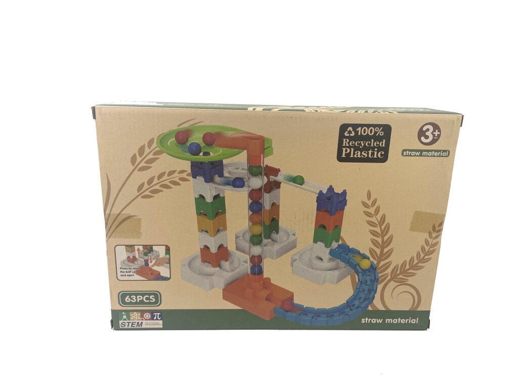 Sestav si vlastní kuličkovou dráhu z 63 dílků! Výrobek podporuje kreativitu a představivost. Vyrobeno z přírodních materiálů, 100% recyklovaný plast.