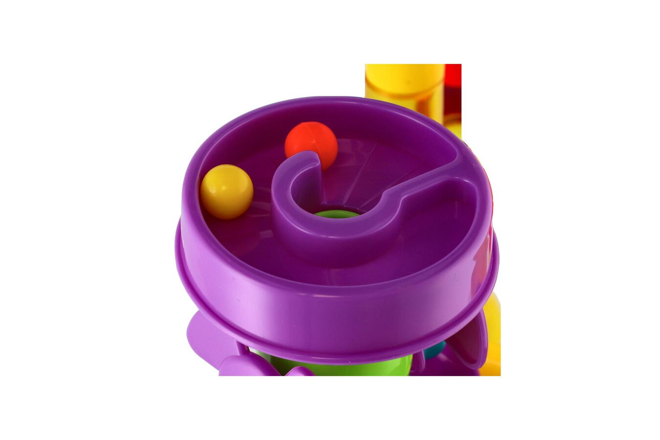 Kuličková dráha umožňuje sledovat cestu kuličky a její rychlost z horní části až dolů. Která kulička bude rychlejší a které sestavení dráhy bude zajímavější? Barevná kuličková dráha obsahuje spoustu překážek, které zvyšují napětí, zda kulička správně proběhne celou stavebnicí. Sestavit dráhu může dítě mnoha způsoby, dle vlastní fantazie. Stavebnice slouží k procvičení jemné motoriky a donutí dítě přemýšlet. Balení obsahuje 55 ks z toho 10 kuliček.