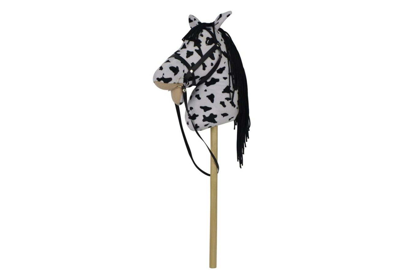 Kůň na tyči plyš 70cm na baterie se zvukem bílo-černý (Appaloosa) v sáčku