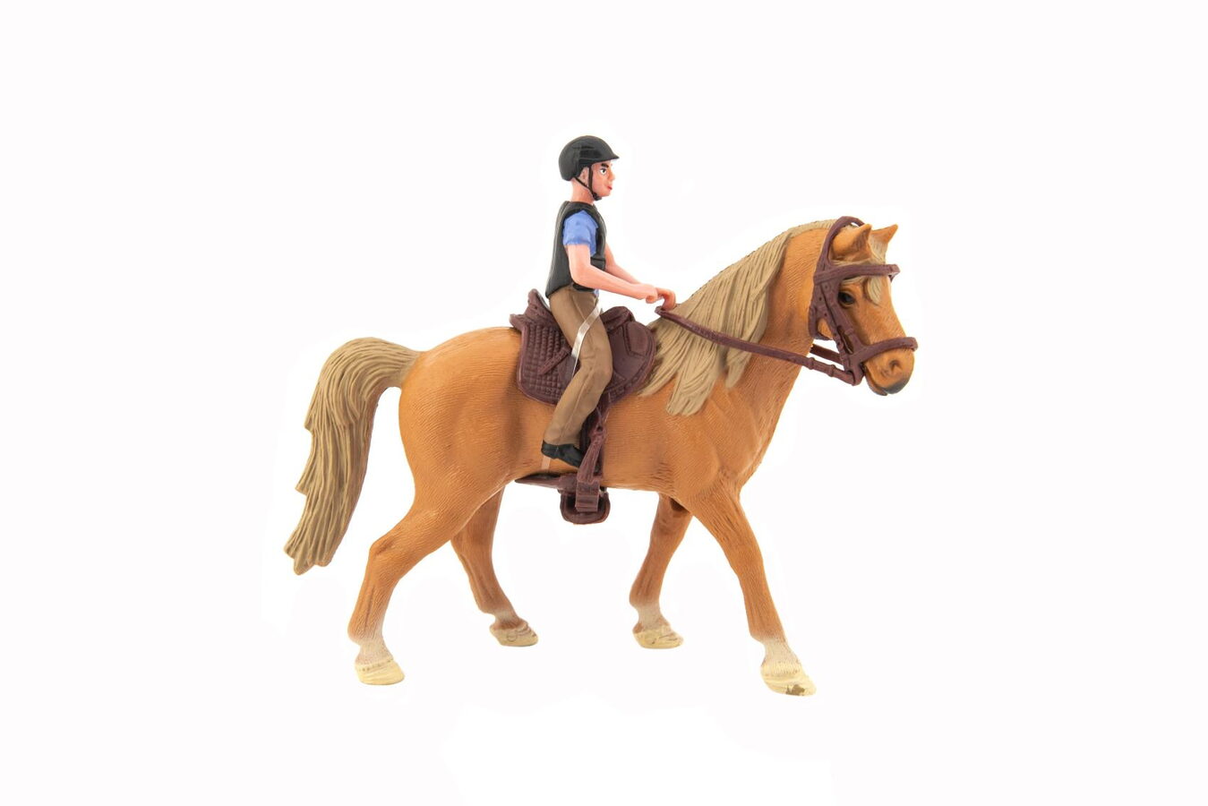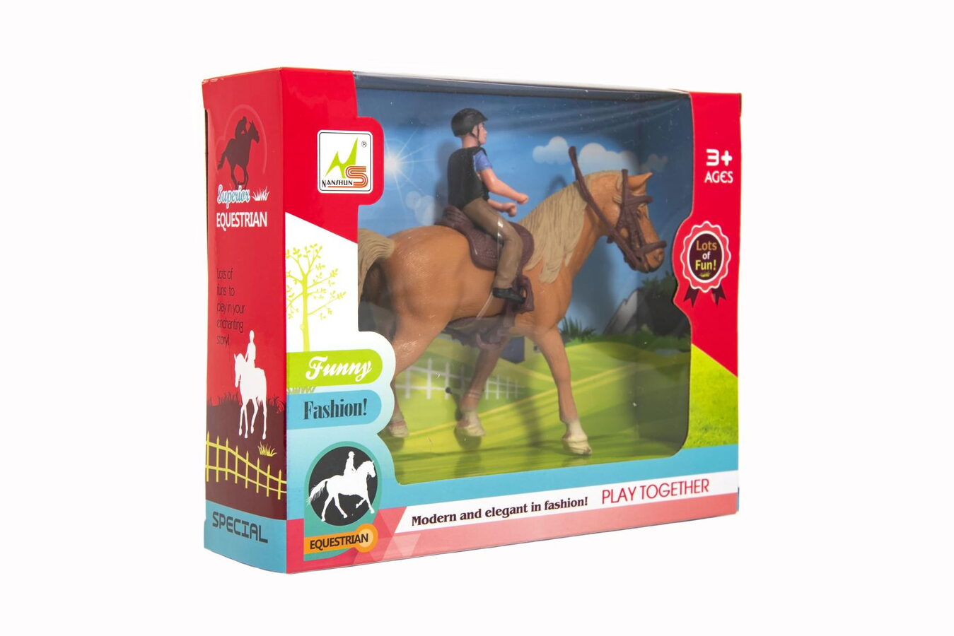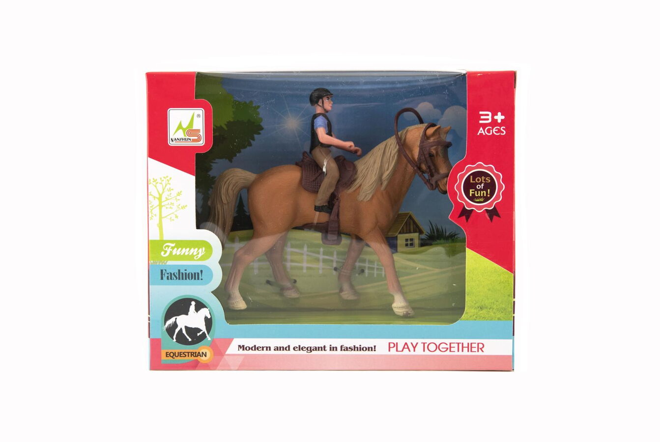 Všechny malé milovníky koní potěší žokej s koníkem s uzdou a sedlem. Žokej musí mít jezdecké oblečení a helmu. Hříva koně není česací. Vyrobeno z kvalitních a odolných materiálů.