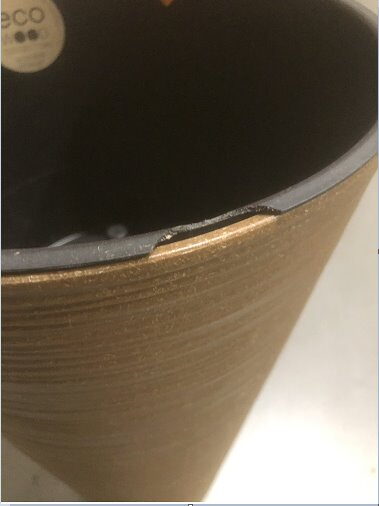 Vklad květináče má odlomený malý kousek plastu (viz. fotografie v galerii). Z tohoto důvodu je poskytnuta sleva. Jinak je produkt nepoškozený, plně funkční a s plnou zárukou.