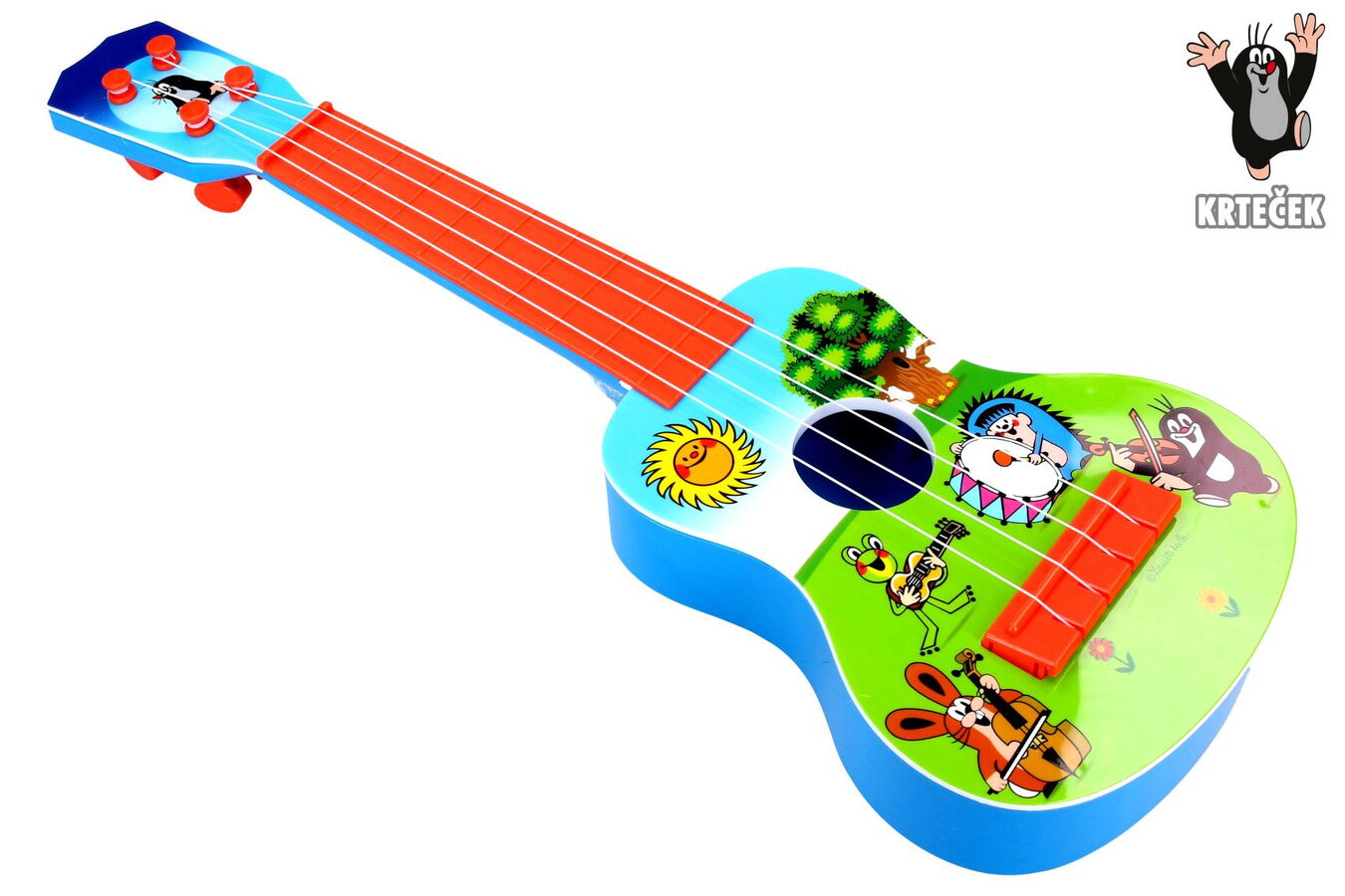 Zábava pro všechny malé muzikanty a milovníky Krtečka! Parádní kytara, která má 4 struny a design Krtečka a jeho kamarádů. Zahraj vše co umíš a zpříjemni si tak den!
