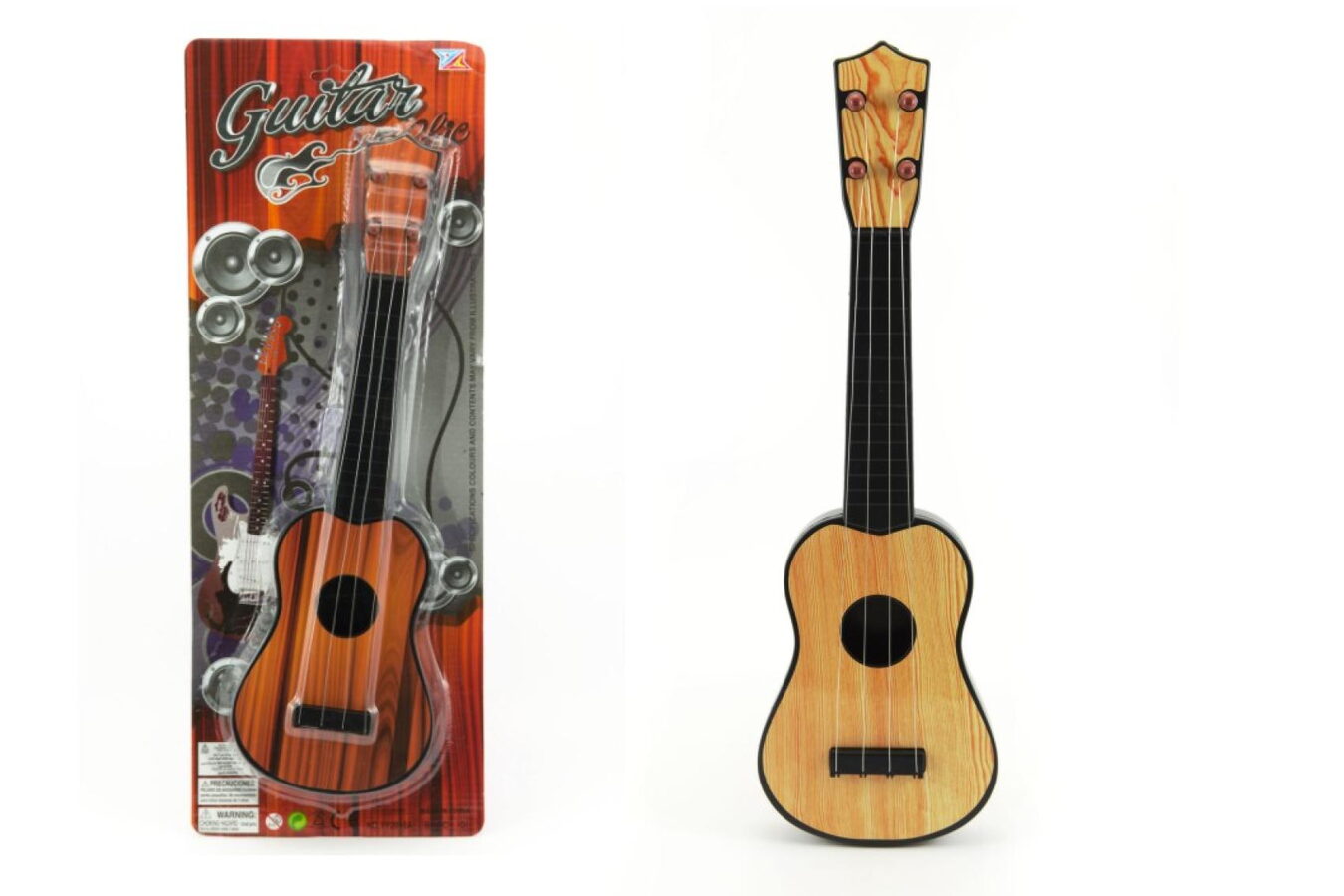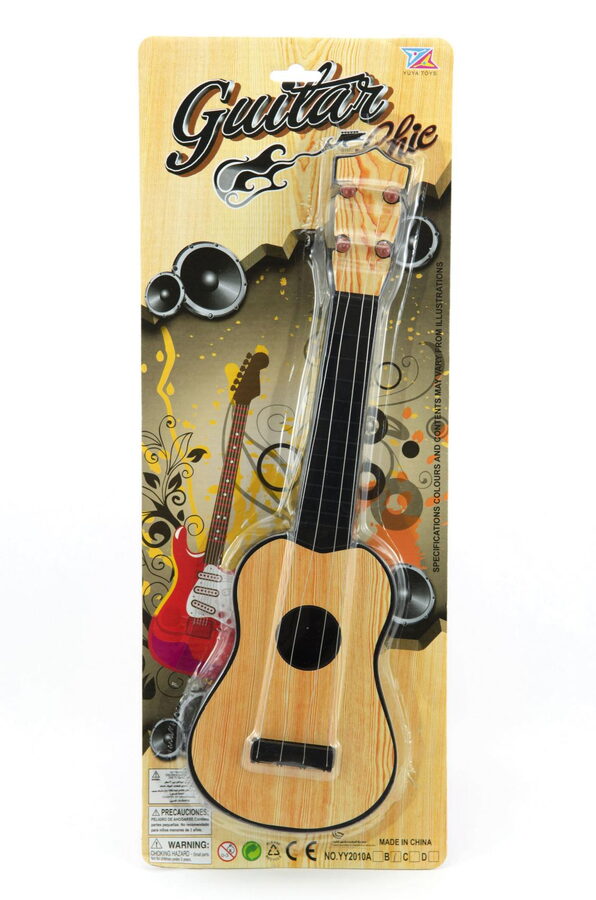Koordinace nových pohybů při hře na kytaru bude pro děti novou zkušeností. Provedení kytary je imitace světlého nebo tmavého dřeva.