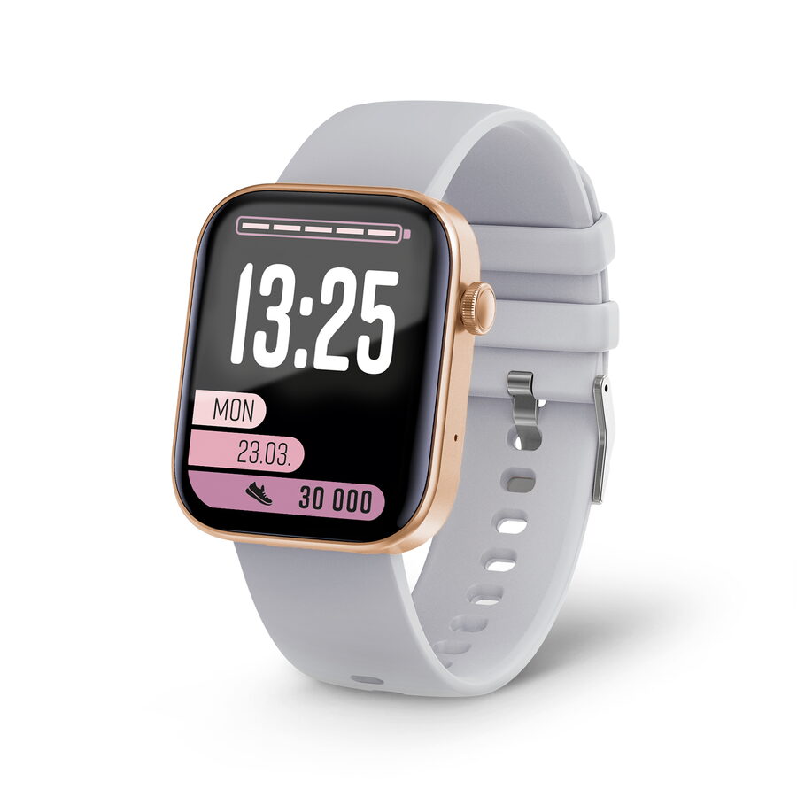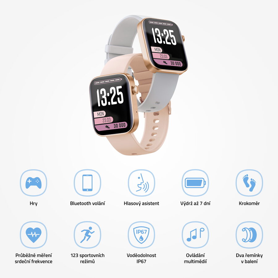 Součástí balení hodinek jsou dva vyměnitelné řemínky v světle růžový a šedý barvě. Vyber si, který se ti zrovna hodí k outfitu.