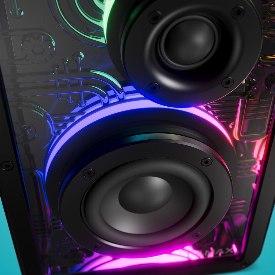 Když se rozezvučí dvoupásmové reproduktory a o slovo se přihlásí technologie BeatBass, nikdo nemůže být na pochybách, že tohle bude parádní večírek. Čistý, vyrovnaný zvuk s bohatými basy a jasnými výškami každého úplně pohltí. Výkon až 50 W už je slušný nářez, ale klidně ho můžeš znásobit díky TWS funkci. S LAMAX CyberWave1 jdeš ale ještě dál, až 4 nastavitelné Cyber LED efekty promění každou akcičku ve fakt cool záležitost.