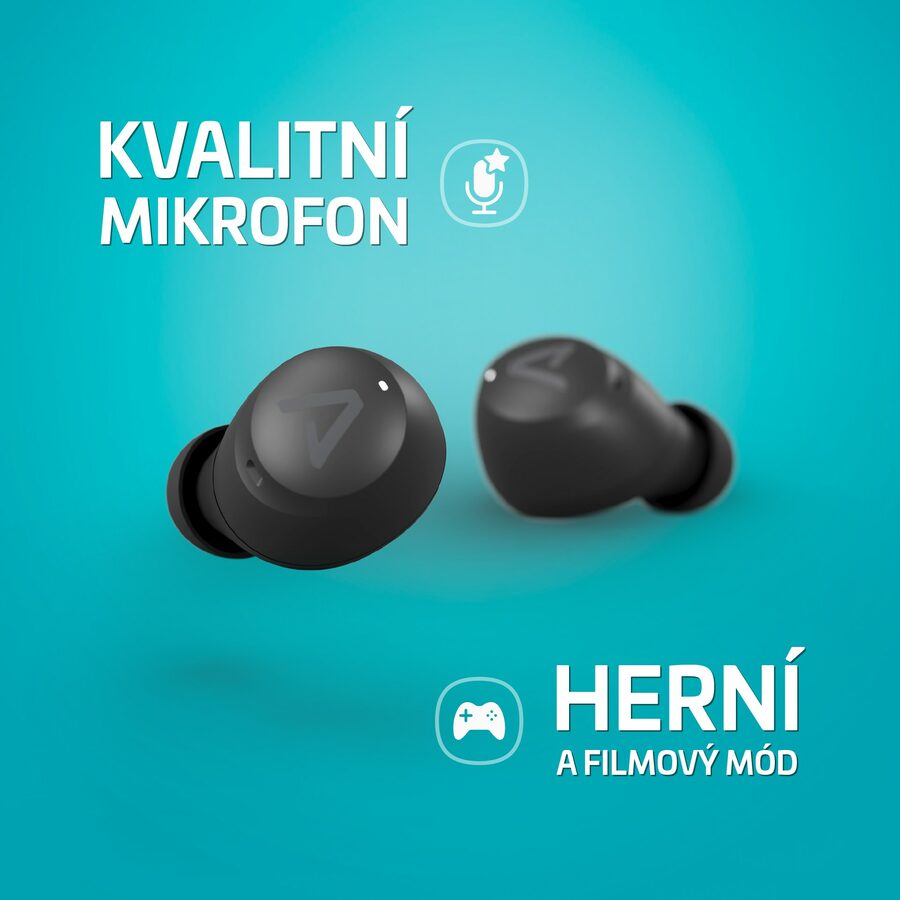 Čistej a vyrovnanej zvuk je u sluchátek to nejdůležitější. My ho doplnili ještě o citlivý mikrofony, se kterýma můžeš přes sluchátka volat a navíc mít obě ruce volný. Super mikrák oceníš nejen při online schůzkách, ale i gamingu. S herním režimem navíc sluchátka sesekají zpoždění na minimum, takže prožiješ každej moment naplno – ve střílečce i u filmu. To všechno bez kabelů, výpadků a na vzdálenost až 15 metrů díky nejnovějšímu Bluetooth 5.3.