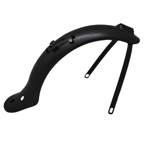 Kompletní set zadního blatníku pro koloběžku LAMAX E-Scooter S11600 včetně brzdového světla, kovové výztuhy, háčku pro skládání a šroubů s gumovými krytkami.