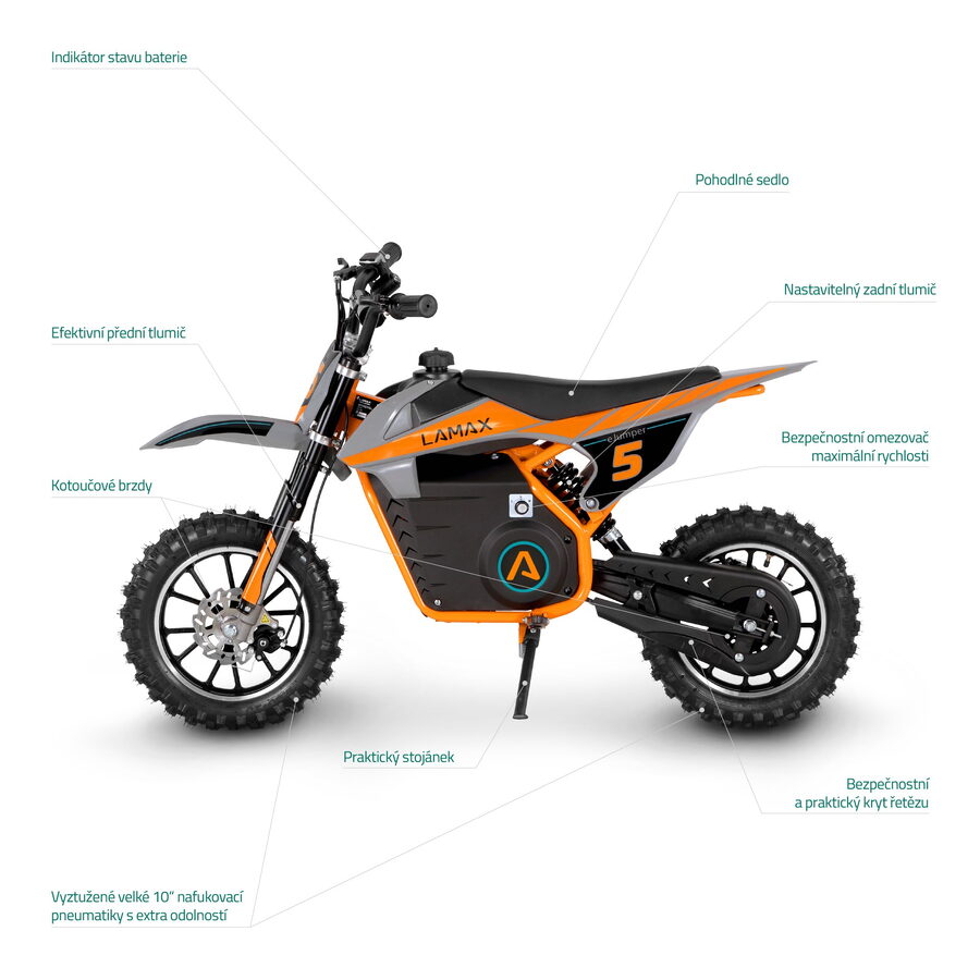 Terénní motorky jsou in. A váš řidič bude taky. Vyladěný design a super odolná konstrukce jsou zárukou kvalitní zábavy.