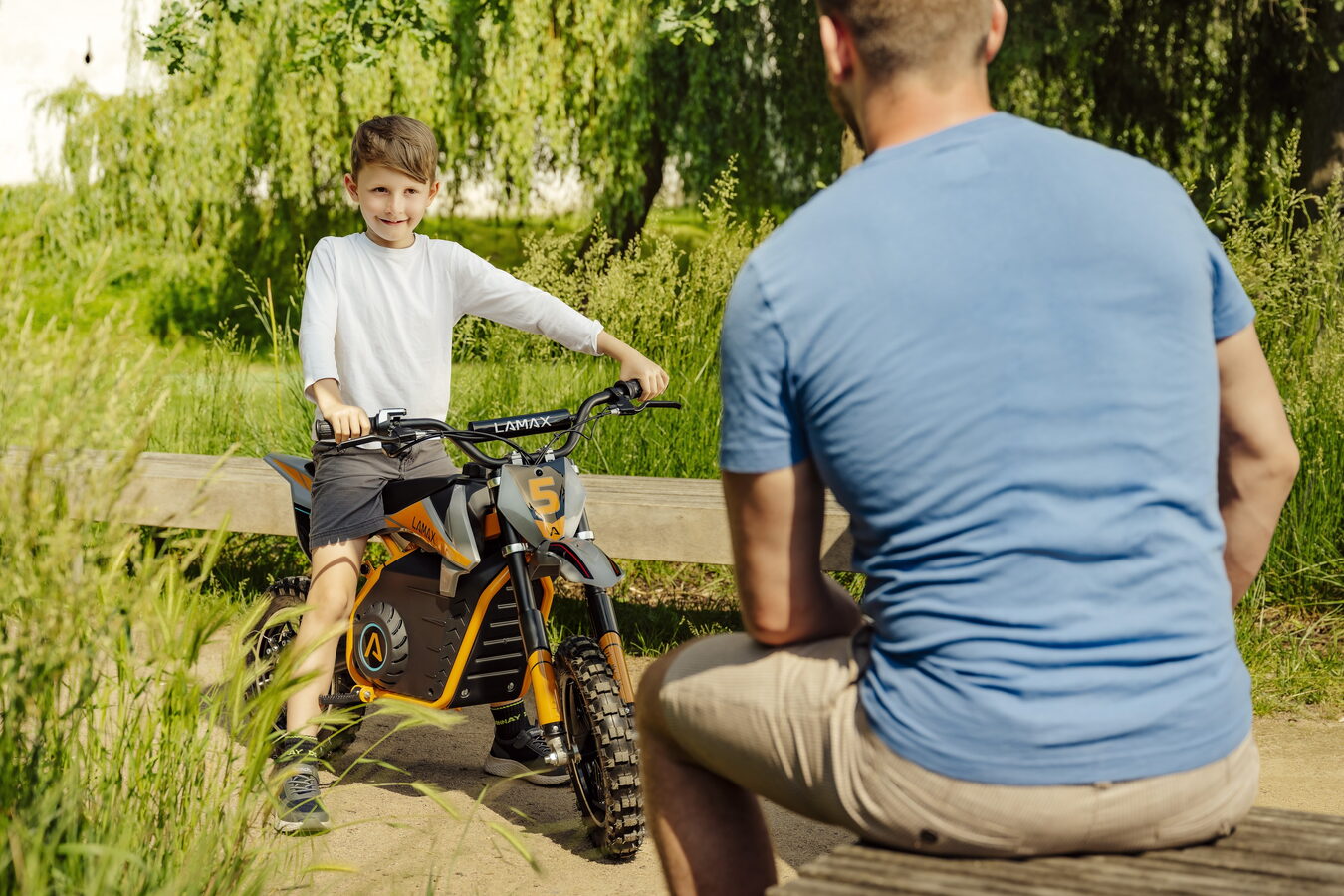 Silný 800W motor vylítne každý kopec rychlostí blesku. A co si budeme povídat, řítit se na biku maximálkou 30 km/h je zatraceně cool i pro pětiletý děcko, který tohle slovo ještě ani nemá ve slovníku. 12 000 mAh baterka vydrží v plný zátěži až hodinu a půl, ale pouštět stopky před jízdou není nutný – díky LCD displeji bude potomek vždycky vědět, kolik šťávy mu zbývá.
