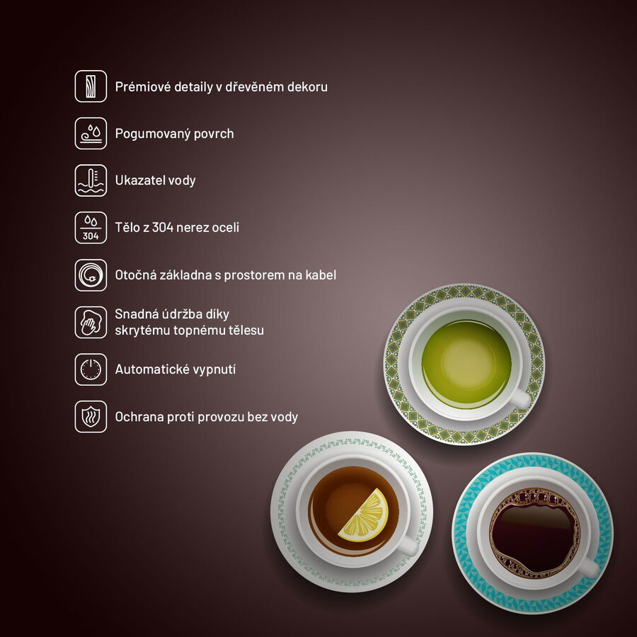 Konvice je vybavena pojistkou proti přehřátí i vaření bez vody.