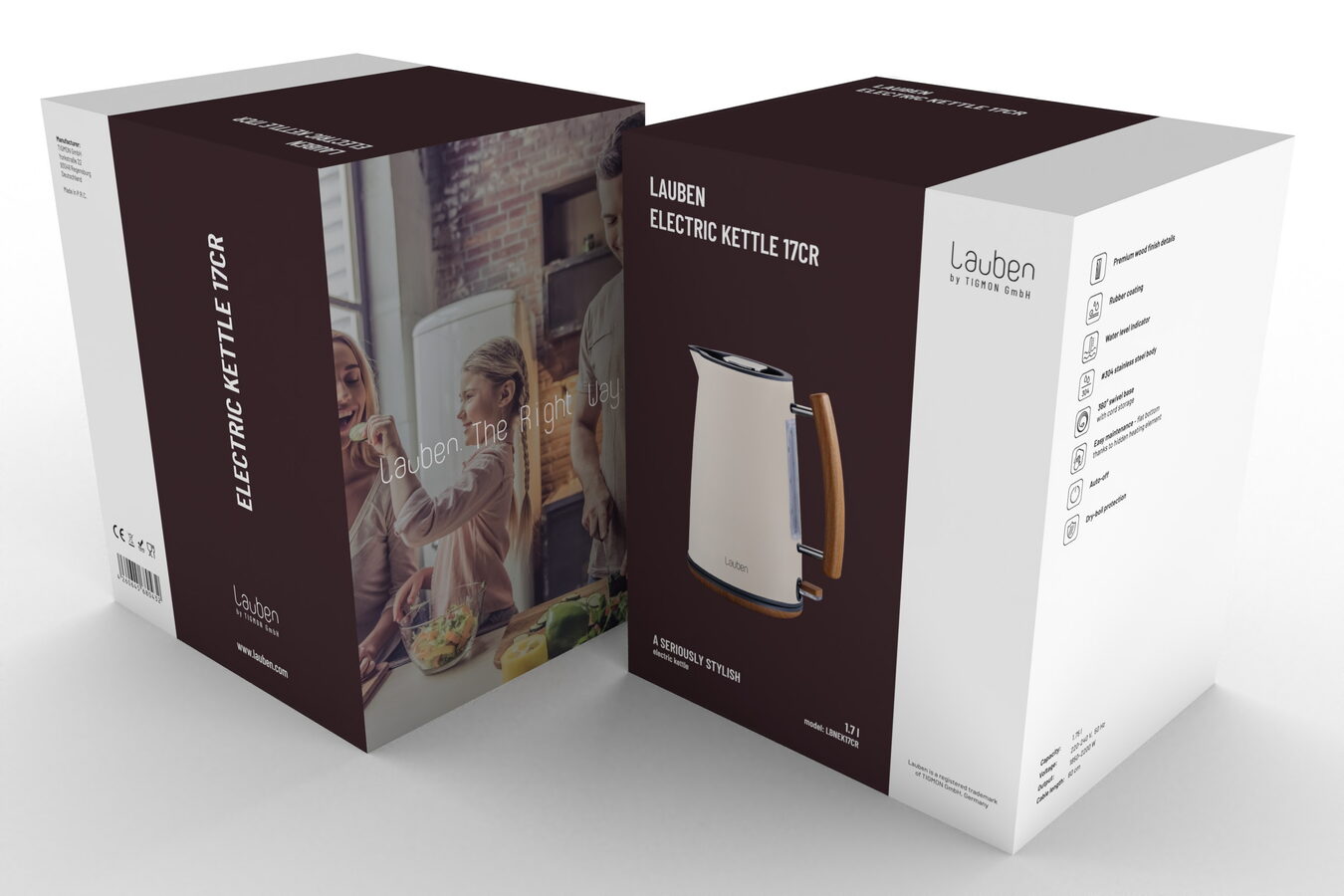 Rychlovarná konvice je jistě nepostradatelnou součástí každé kuchyně. Může být ale zároveň stylovým doplňkem, který pozvedne celý interiér na vyšší úroveň. Lauben Electric Kettle 17CR je designová rychlovarná konvice navržena v čistém severském stylu, z #304 nerezové oceli s prémiovým pogumovaným povrchem. Údržba konvice je snadná, topné těleso je skryto, tudíž se méně zanáší a konvice se lépe čistí. Mysleli jsme i na bezpečnost, konvice má pojistku proti přehřátí i vaření bez vody. Aktuální množství vody vždy poznáte z ukazatele na těle konvice. Díky svému designu konvice nejen dobře vypadá, ale je i praktická. Základna je otočná o 360° pro jednoduchou manipulaci a samozřejmostí je prostor pro skrytí kabelu, který jinak překáží a nevypadá hezky.