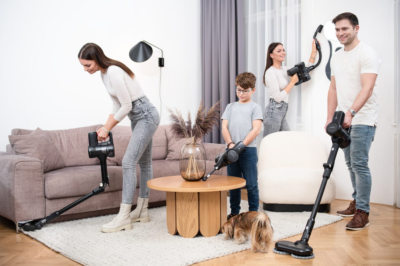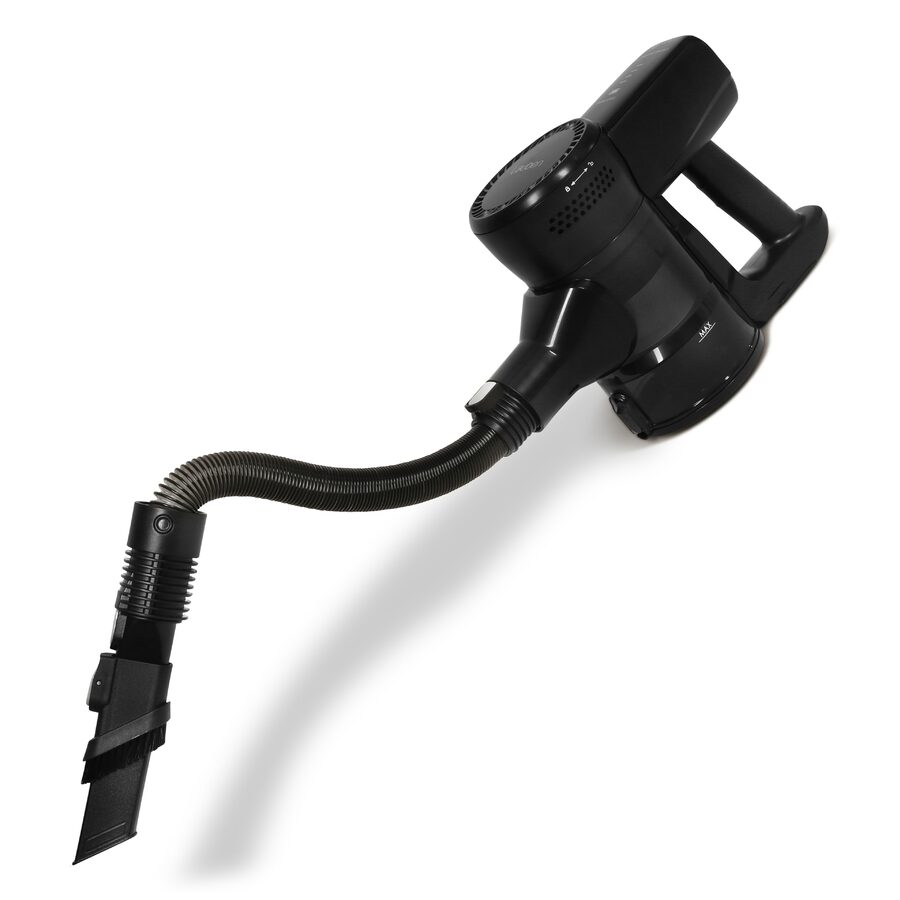Sběrná nádoba umístěná v horní části přístroje a flexibilní tyč s kloubem dávají možnost snadného úklidu i pod nábytkem či v užších prostorech. Naopak speciálně zakřivený nástavec na prach a do výšek umožňuje pohodlný úklid na skříňkách. Do hůře dostupných míst se dostane flexibilní hadice, a zvláště majitelé domácích mazlíčků ocení hlavici s motorizovanými výměnnými kartáči, kdy antistatický je určen na tvrdé podlahy a další kartáč si poradí s koberci a zvířecími chlupy.