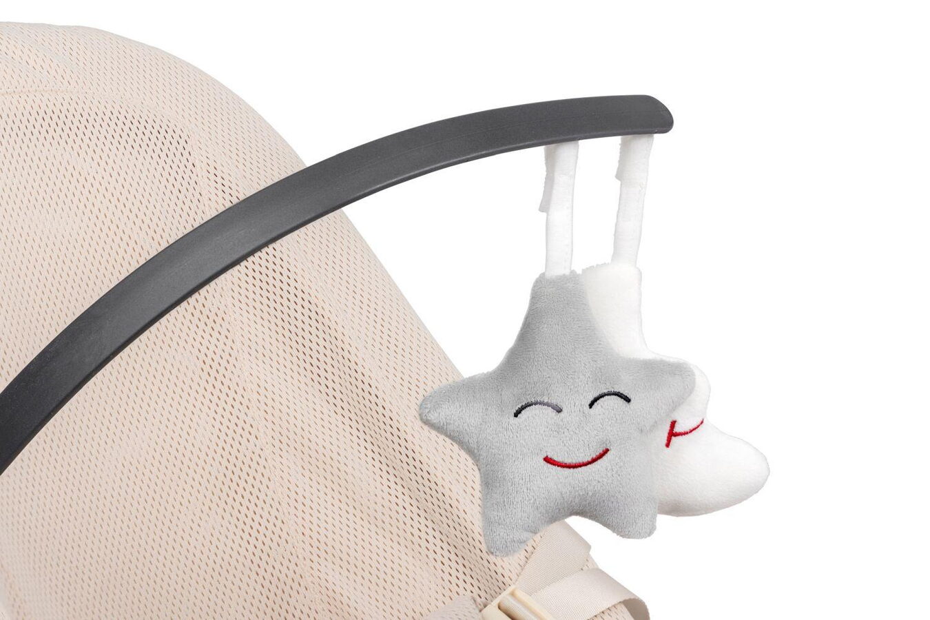 Součástí je odnímatelný hrazdič se dvěma hračkami – měsíčkem a hvězdičkou. Pomáhají rozvíjet zrak, soustředění i koordinaci pohybů už od prvních měsíců života.
