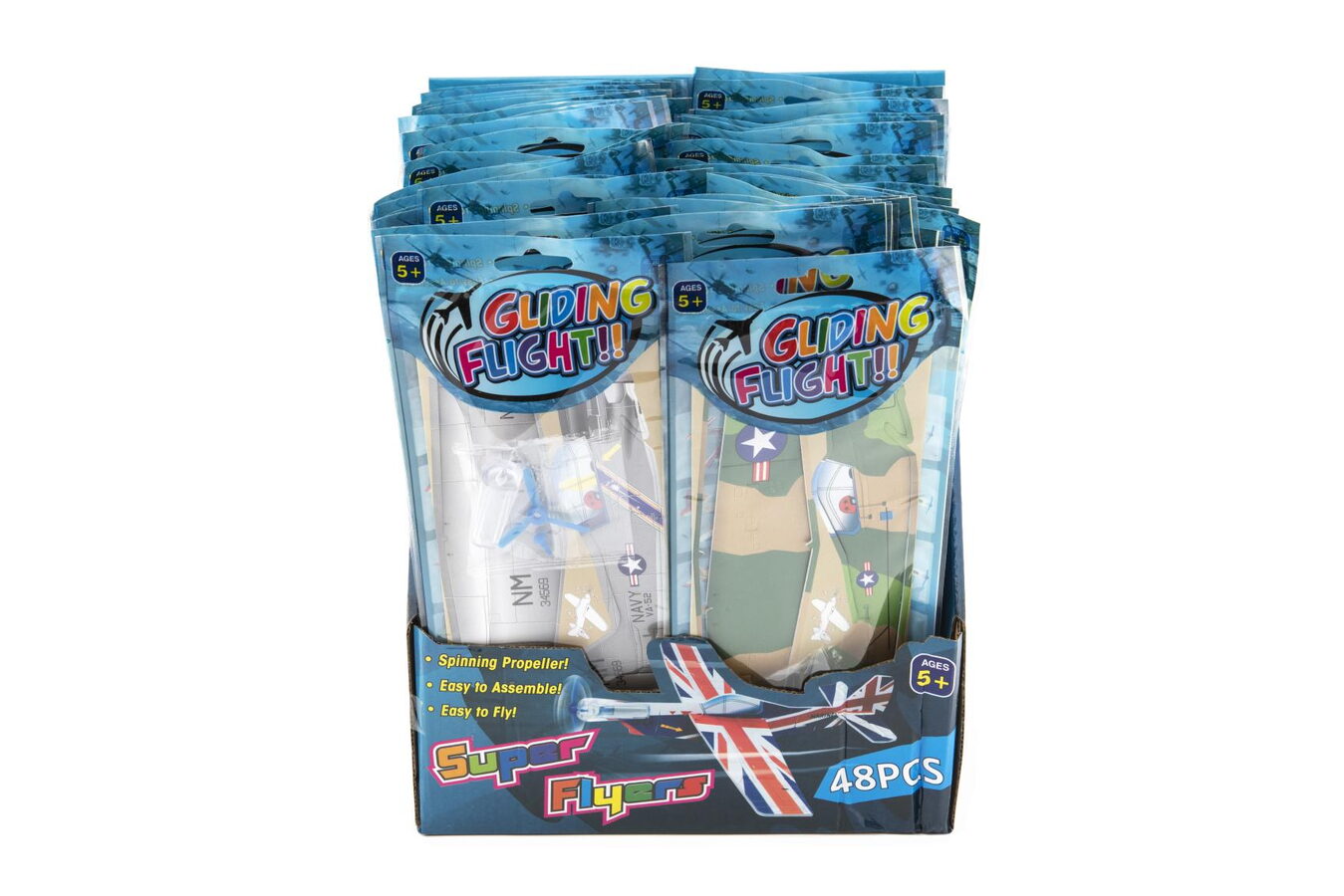 Letadlo házecí pěnové model 24cm mix barev v sáčku 48ks v boxu