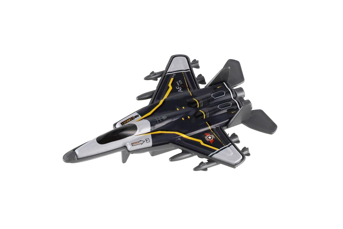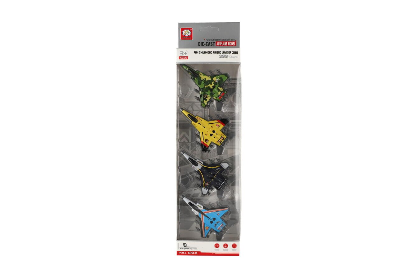 Sada moderních stíhacích letadel v atraktivním designu a s kovovým tělem potěší každého malého pilota. Funkce zpětného natažení (pull-back) umožňuje snadnou a zábavnou hru. Každé letadlo má originální barevné provedení a robustní konstrukci.