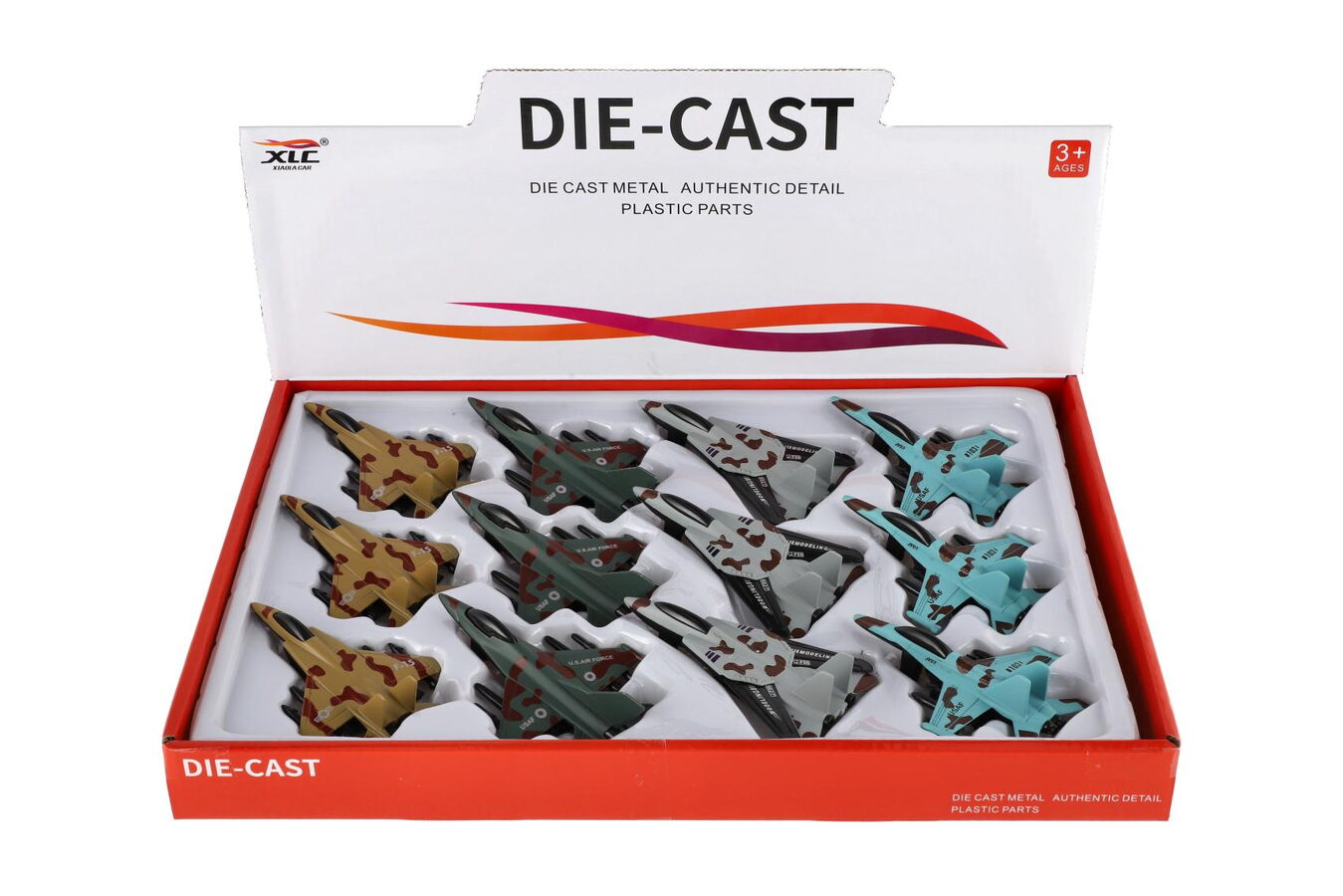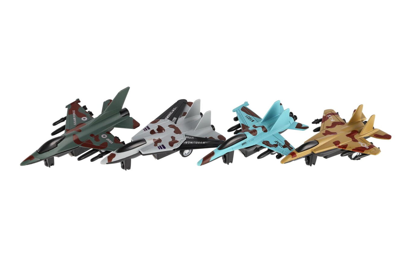 Letadlo/stíhačka kov/plast 14cm na zpětné natažení 4 barvy 12ks v boxu