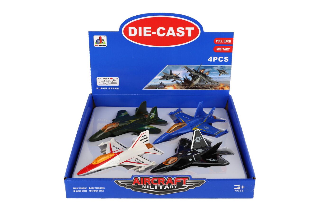 Letadlo/stíhačka kov/plast 16cm na zpětné natažení 4 barvy 4ks v boxu