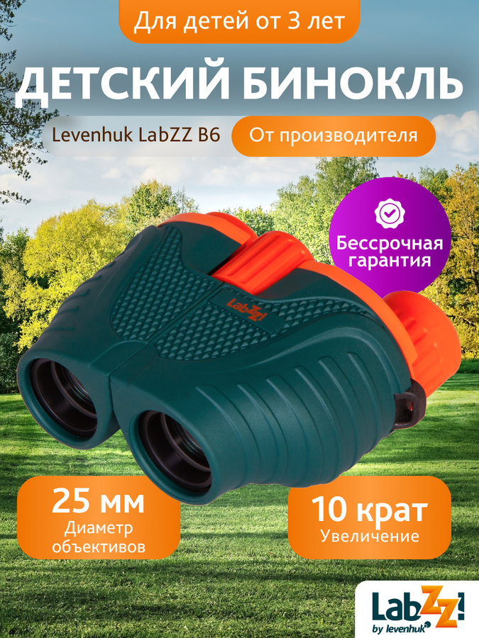 Binokulární dalekohledy Levenhuk LabZZ B6 jsou klasické binokulární dalekohledy pro denní pozorování. Jsou určeny zejména pro děti. Jsou menší a lehčí než binokulární dalekohledy plné velikosti a umožňují ideální úchop pro dětskou ruku. Mladý průzkumník si jej vezme na procházku, protože binokulární dalekohled mu pomůže pozorovat hodně zajímavých věcí! Funkce optiky umožňují studovat přírodu a architekturu, pozorovat zvířata a ptáky.