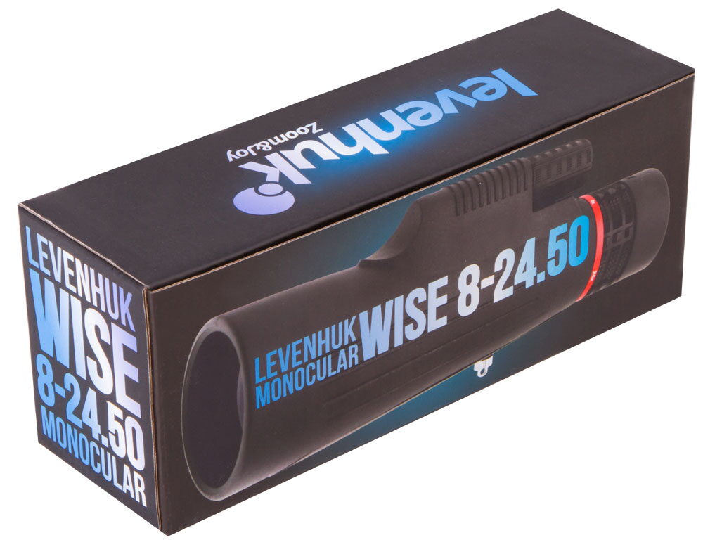 Levenhuk Wise 8–24x50 je monokulární dalekohled s vysokou světelností s proměnným zvětšením v rozsahu od 8x do 24x. Tento výkonný a spolehlivý optický přístroj doporučujeme zakoupit všem cestovatelům, turistům a pozorovatelům přírody a zvěře v ní žijící. Dokážete s ním též podrobně sledovat architektonické prvky v historických centrech měst. Proměnné zvětšení přispívá k univerzálnosti použití tohoto optického přístroje – velké objekty lze snadno pozorovat a zaostřovat na sledované objekty při nízkém zvětšení. Navíc dokážete podrobně sledovat malý cíl při maximálním zvětšení.